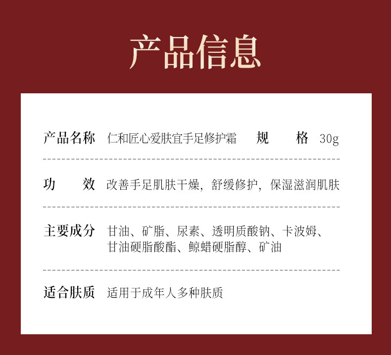 仁和匠心皲裂膏护手霜防龟裂干裂脚裂手足滋润膏