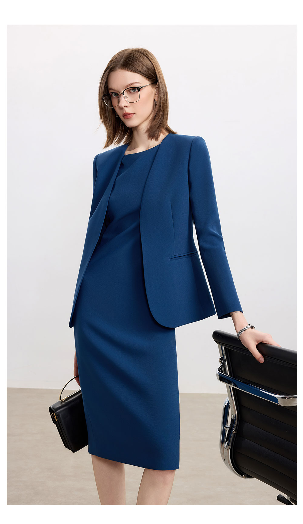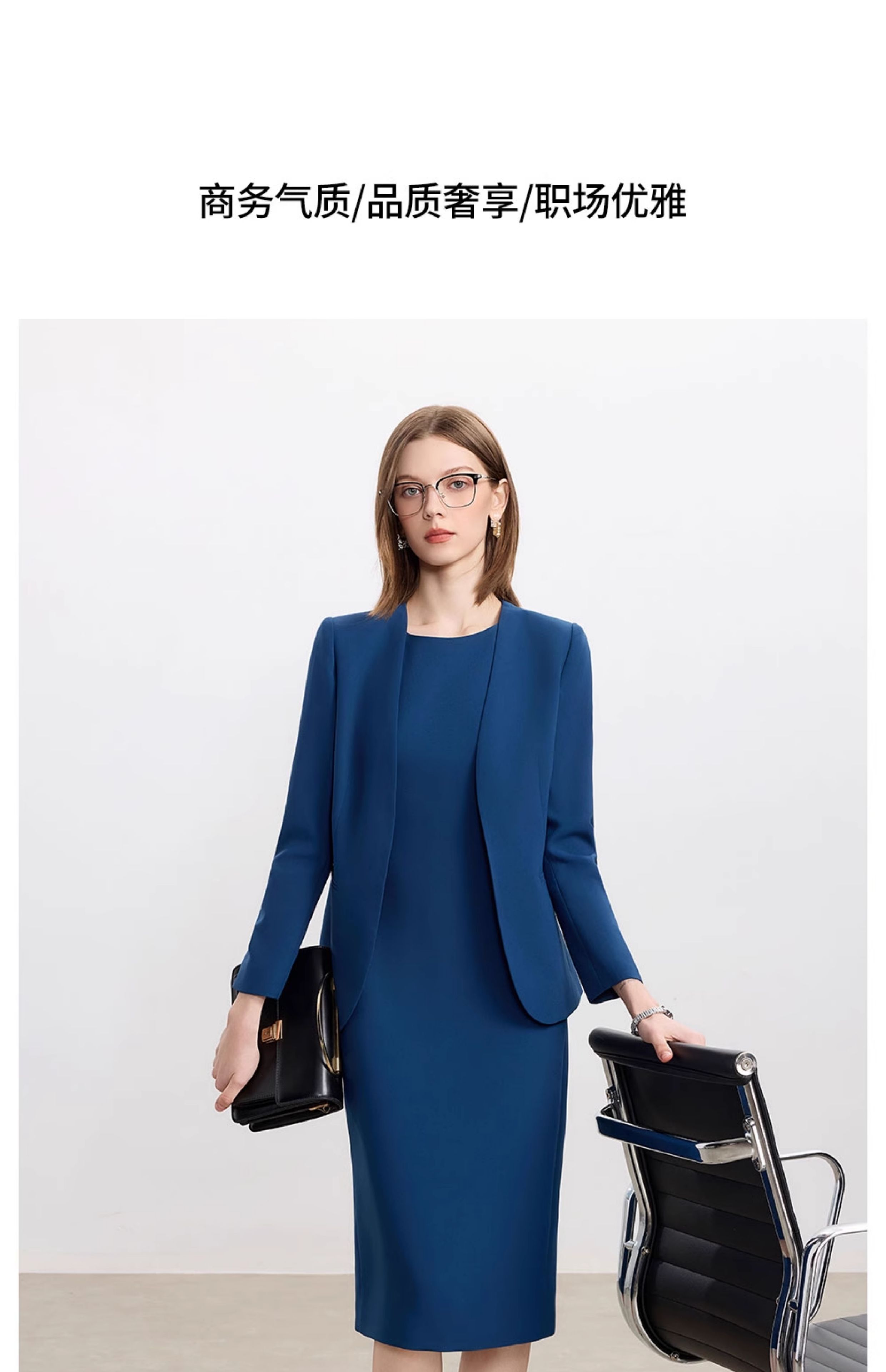 IWY/青蓝色西装连衣裙高端总裁职业裙装套装女秋款气质干练西装两件套内搭连衣裙C2344+Q1439