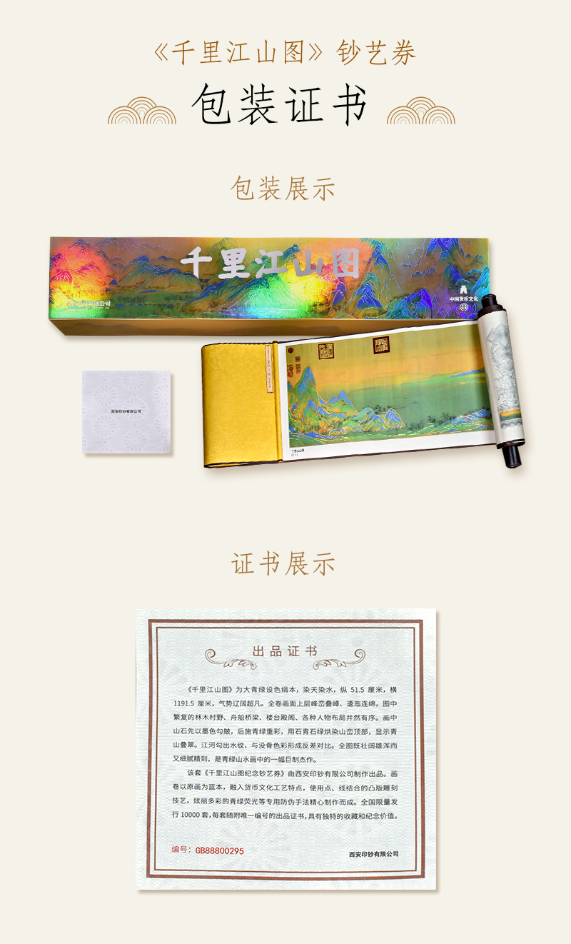 【西安印钞】千里江山图纪念钞艺券长卷 传世名画 发行量1万套
