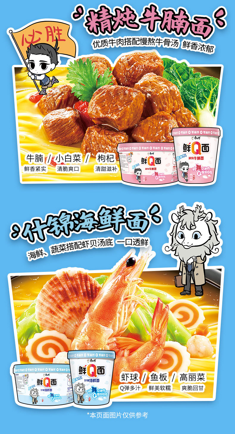 康师傅 鲜Q杯系列 (精炖牛腩面/肉末担担面/什锦海鲜面 )3口味12杯