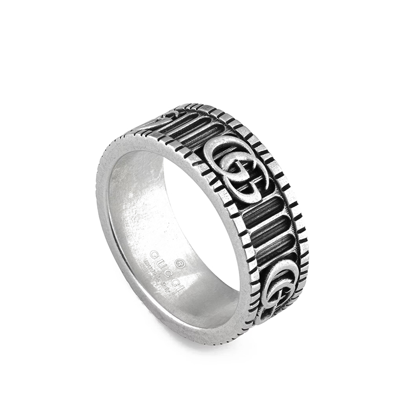 双G始终是品牌设计中不可或缺的一部分。将70年代Gucci典藏腰带的设计与现代美学相结合,别具一格的双G与纯银珠宝系列的精美刻花图案相得益彰。双色效果与立体条纹设计形成对比美感,标志性的品牌元素为纤细的戒指平添层次。