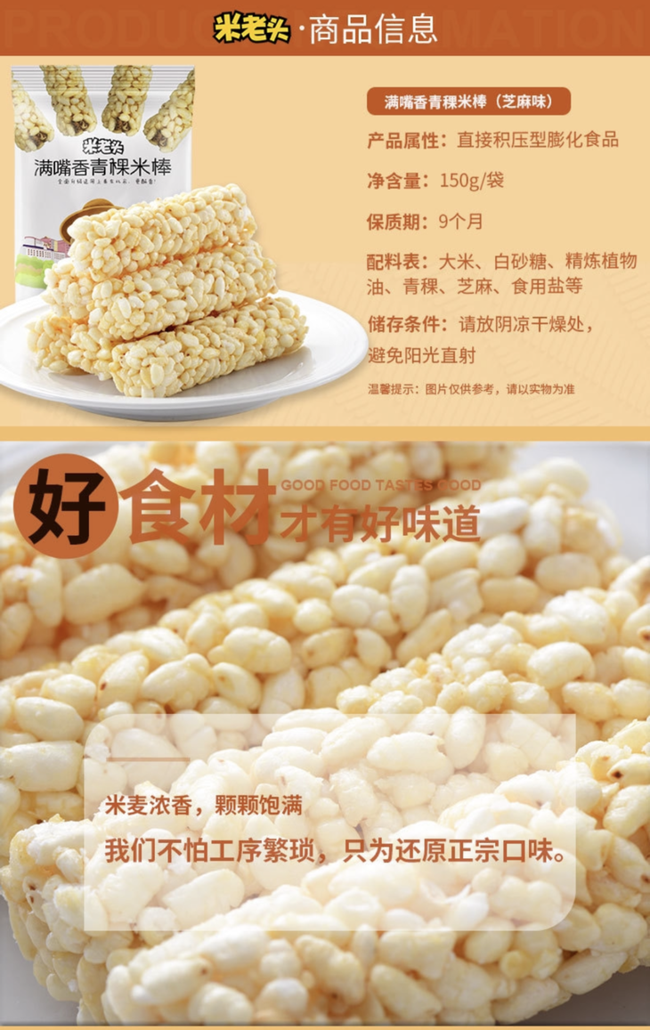 米老头满嘴香青稞麦棒、米棒芝麻味150g