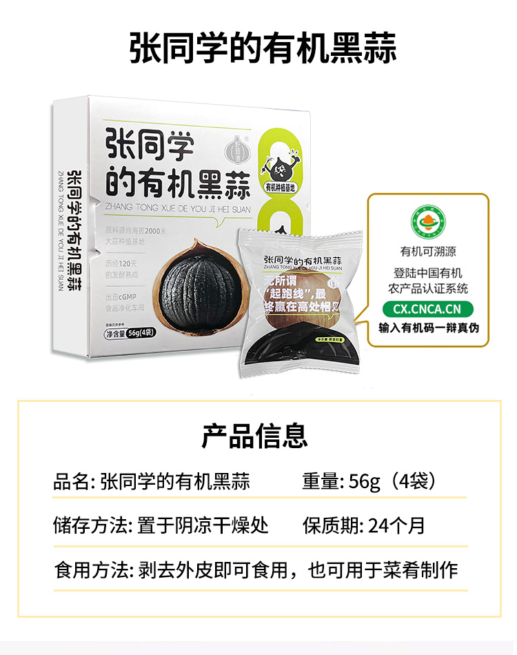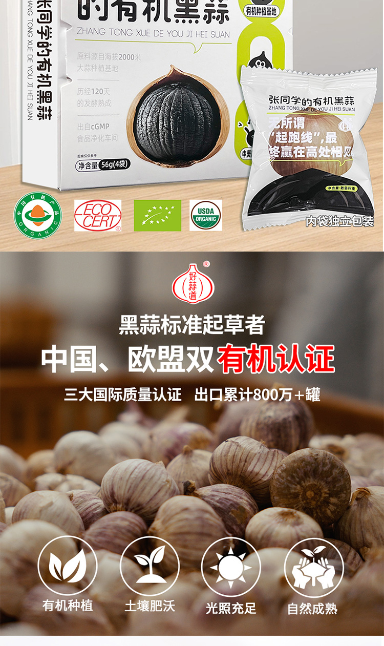 有机独头黑蒜,独立包装可即食可烹饪 56g/盒