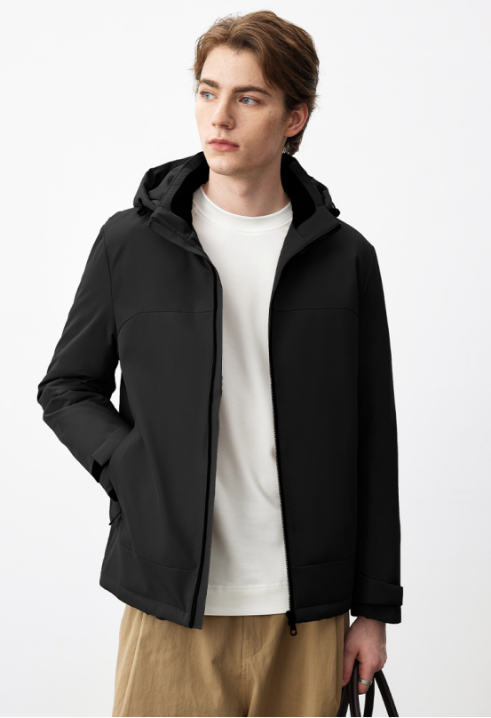 超级百搭的羽绒服,让你的秋冬穿搭更加有型! 高品质鸭绒,绒子含量85% “御寒大魔王”🔝 保暖蓬松穿着更轻盈方便 包裹住每个瑟瑟发抖的冬天 贴心连帽设计,护住头部,包裹耳朵 让最容易受凉的部位也得到周全保护 雨天挡个毛毛雨也方便