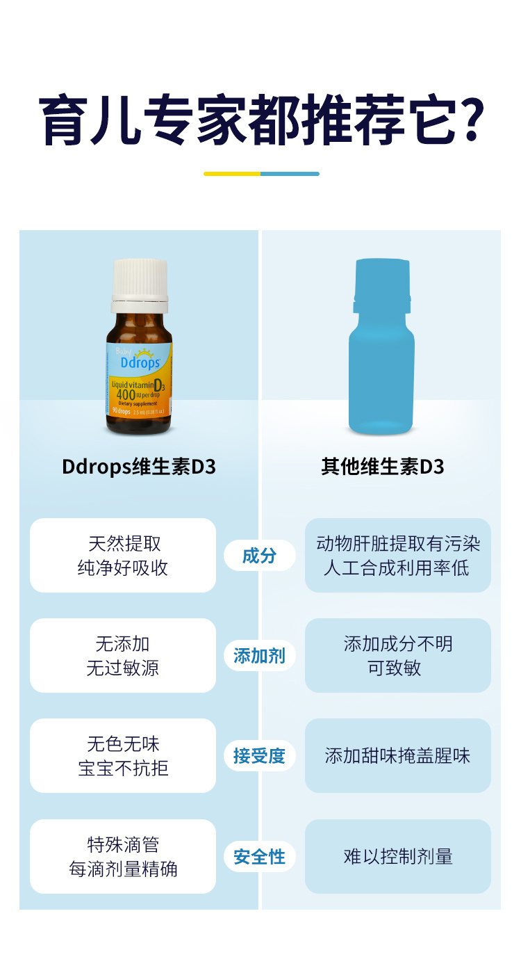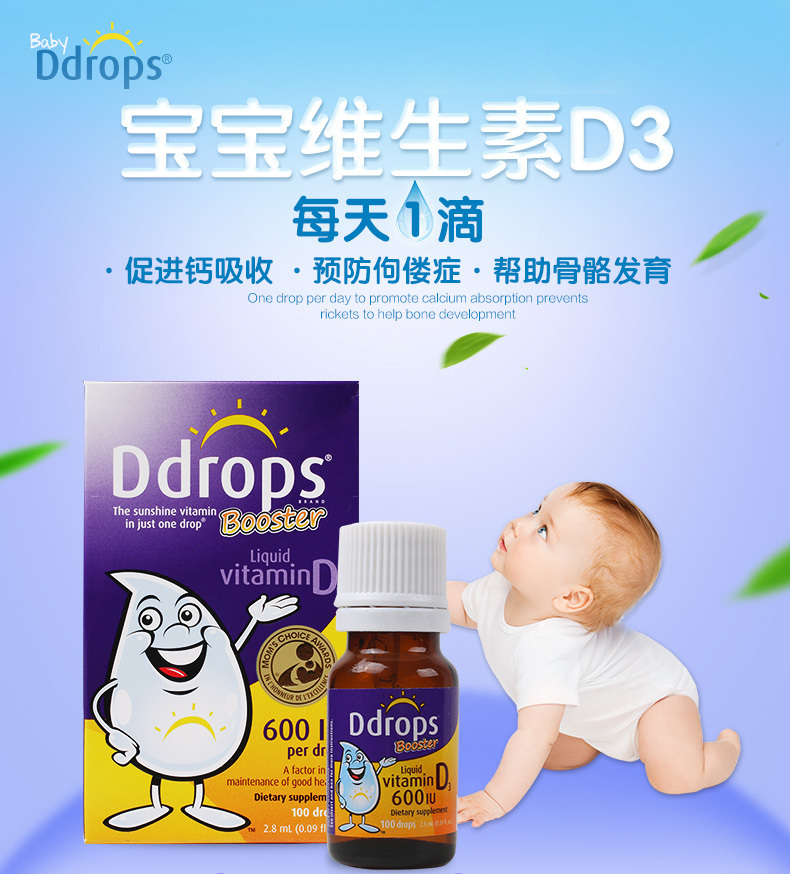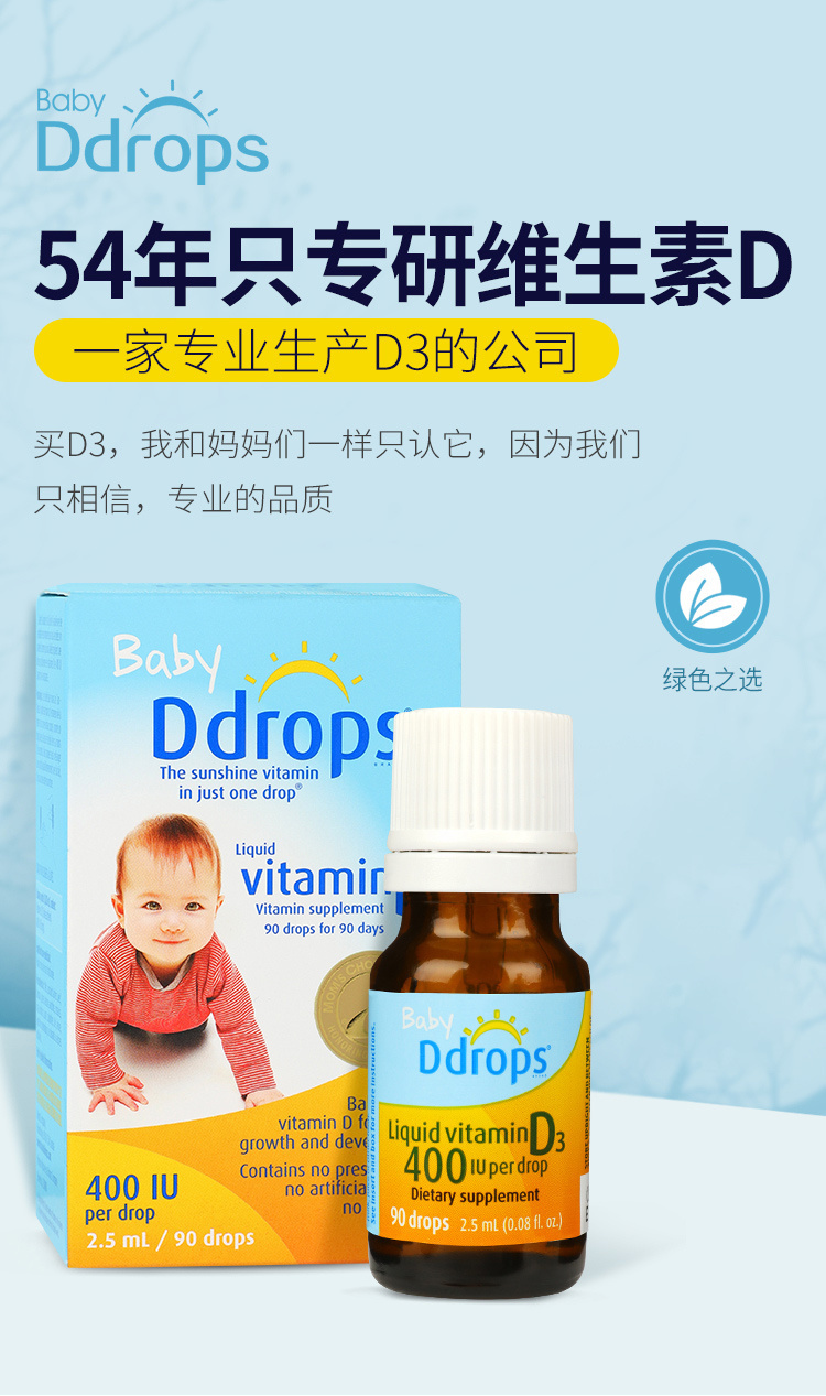 2.美国Ddrops婴幼儿维生素D3滴剂(蓝色)