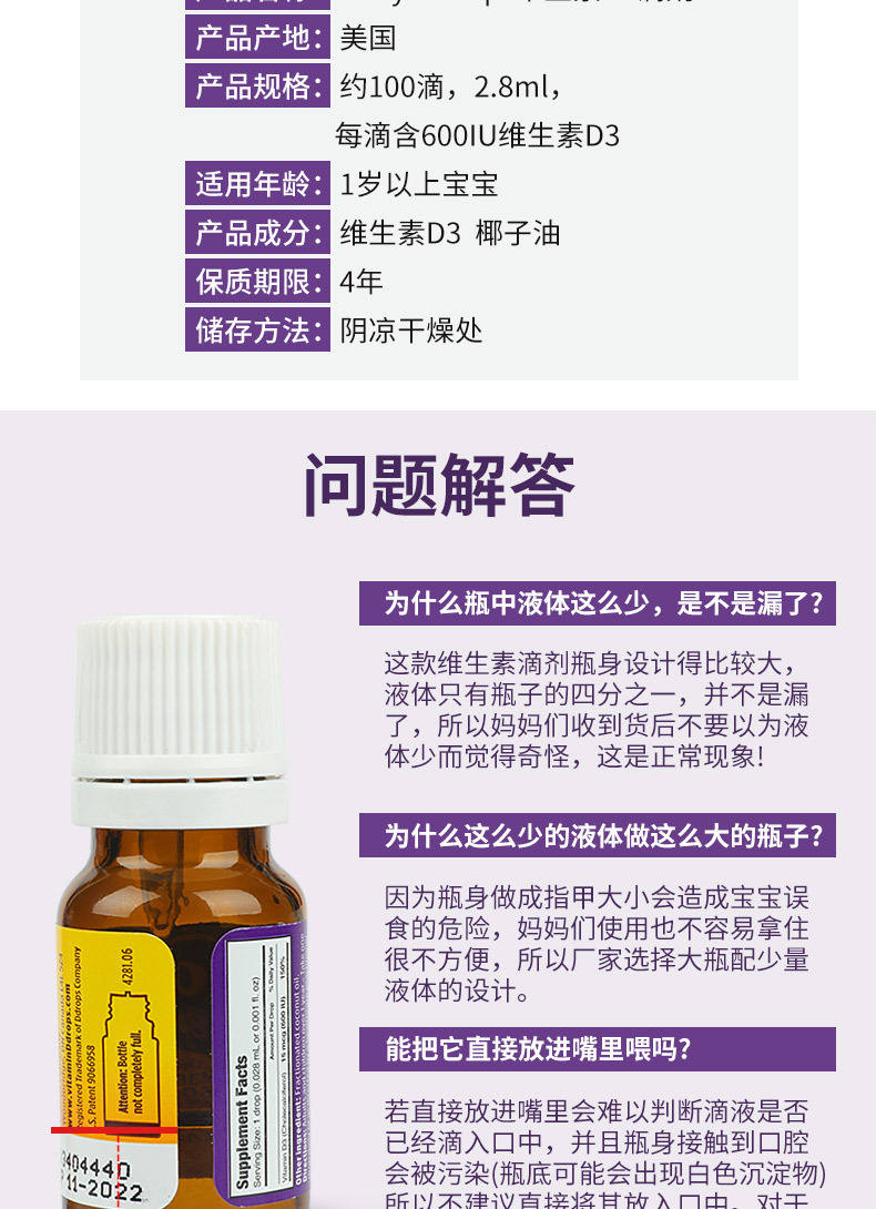 1.美国Ddrops婴幼儿维童生素D3滴剂(紫色)