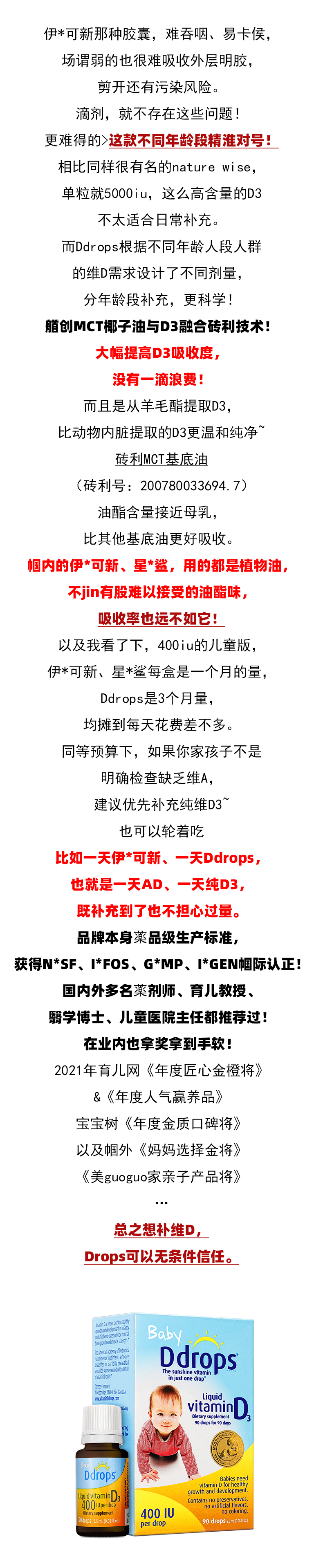 年后发!宝宝刚需!🇺🇸美国&加拿大儿科医生推荐👍🏻【Ddrops儿童维生素D3滴剂】补充VD大于补钙!天然提取、不含防腐剂 ✅无色无味,促钙好吸收,宝宝易接受不反抗丨每盒都有防伪码❗️