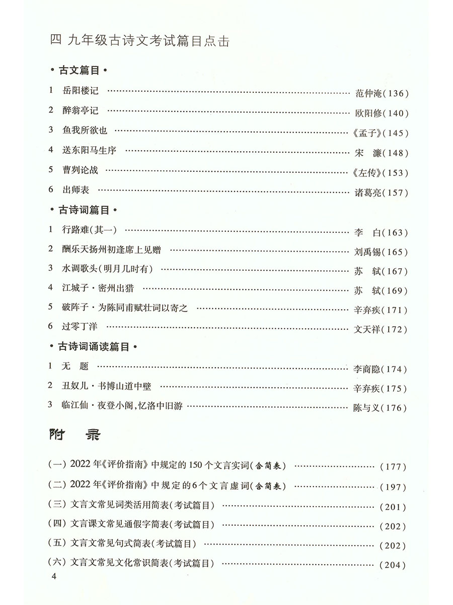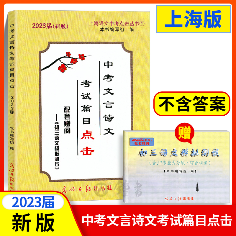 2023届新版中考文言诗文考试篇目点击 赠阅初三语文模拟测试1 光明日报出版社 中考文言文点击 初中九年级文言文点击