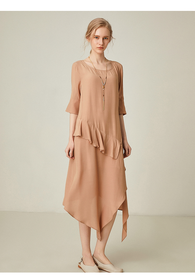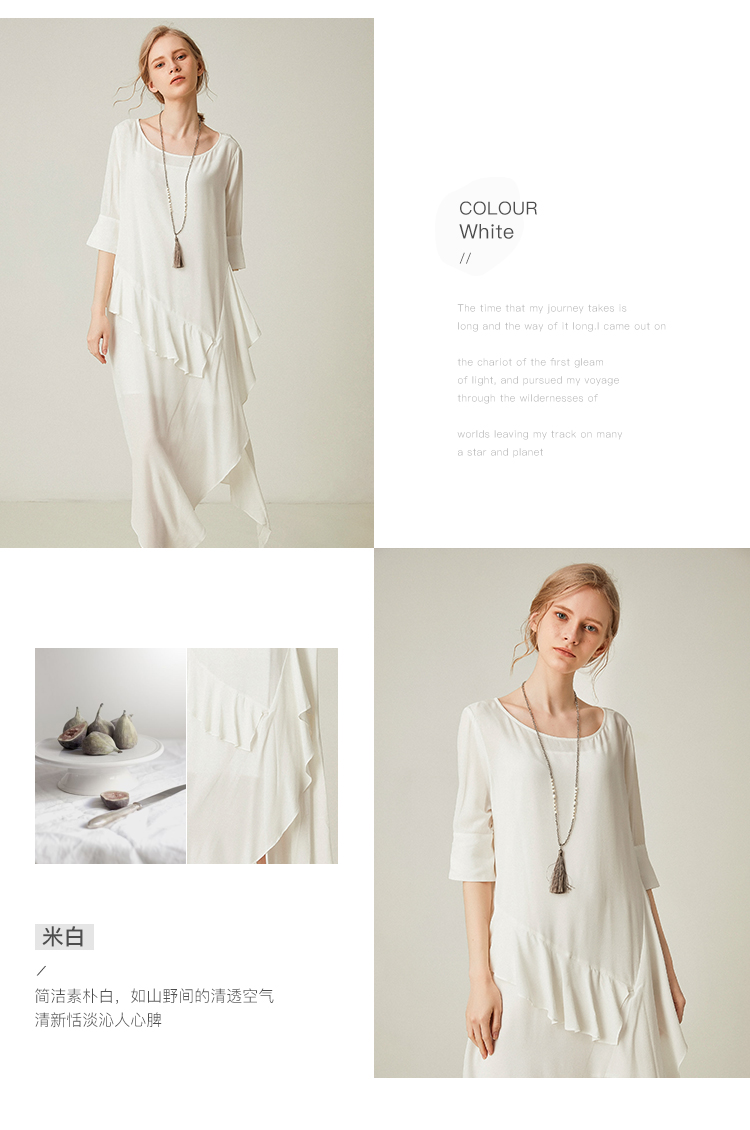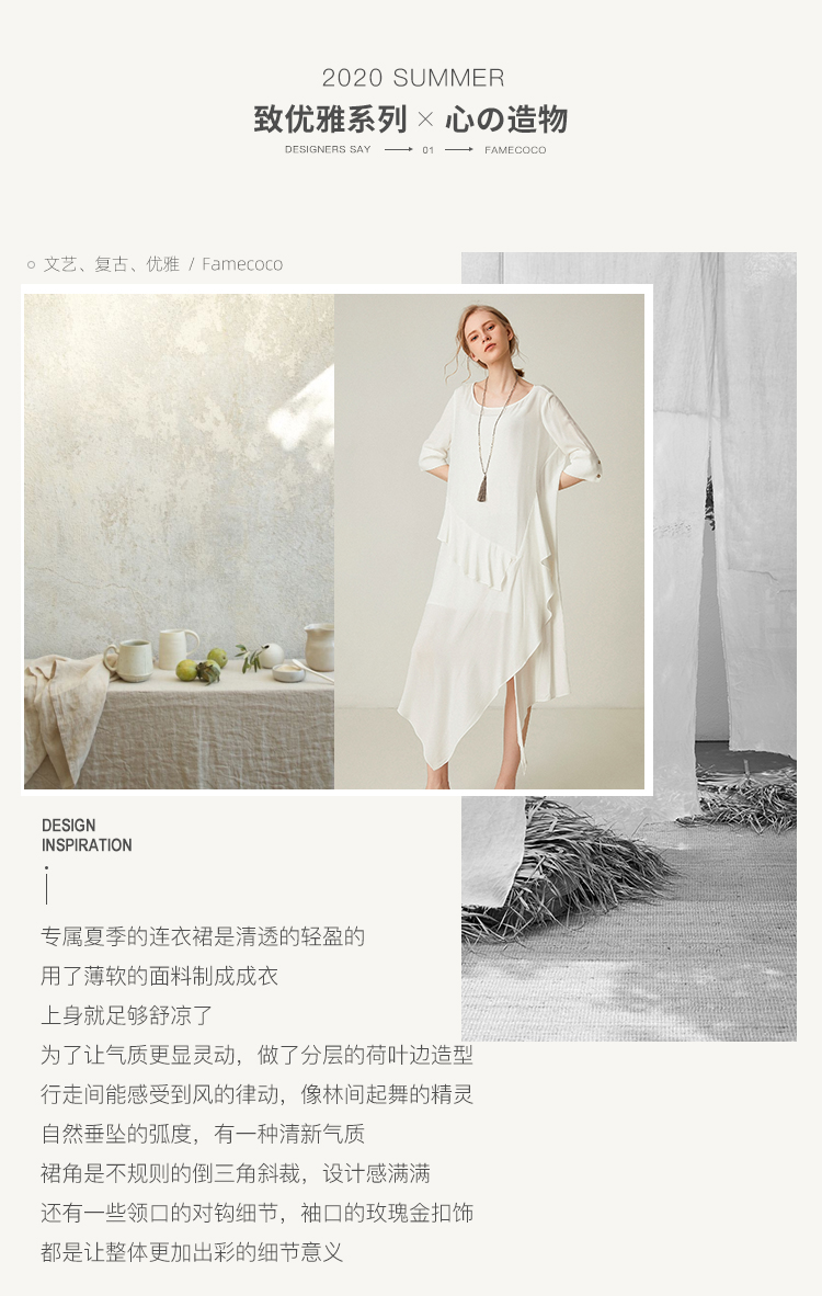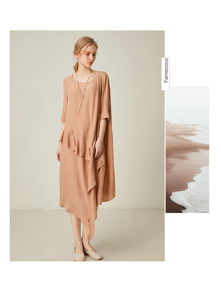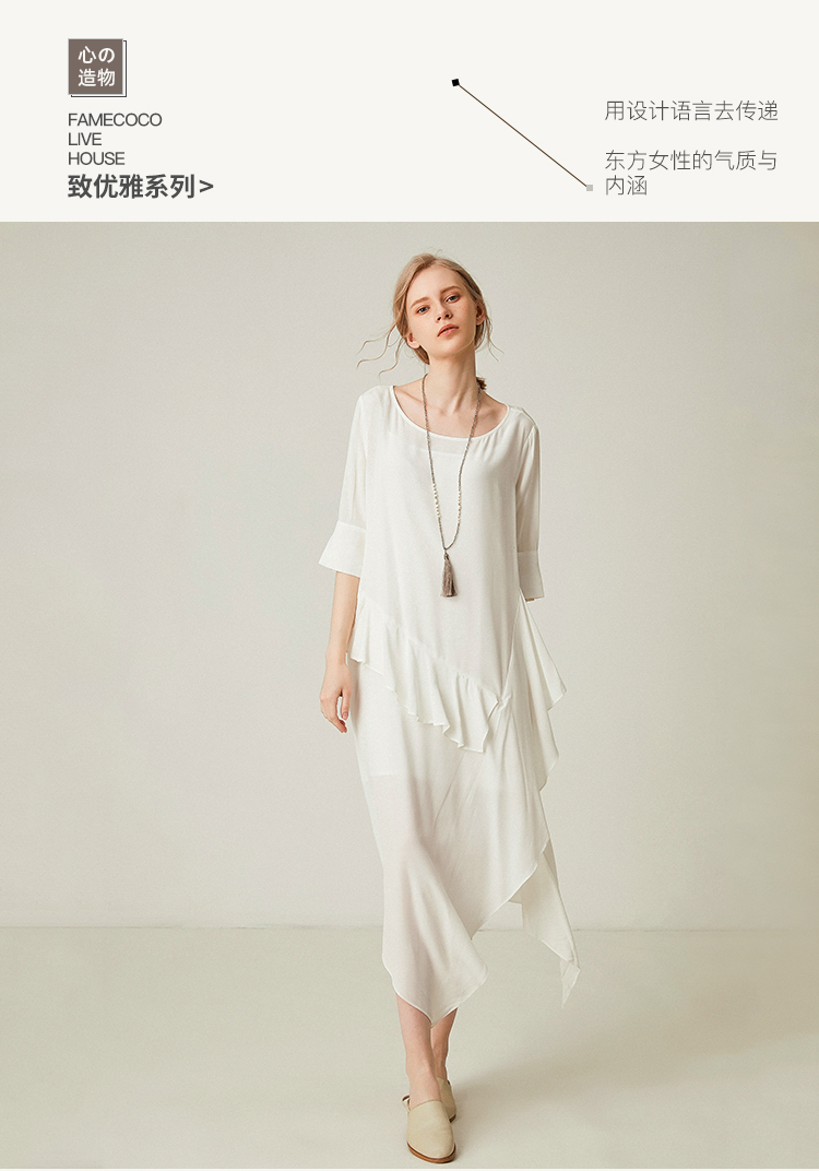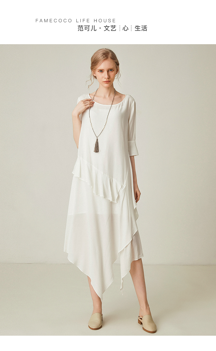 famecoco范可儿连衣裙2020新款夏五分袖显瘦不规则长裙F193FA042