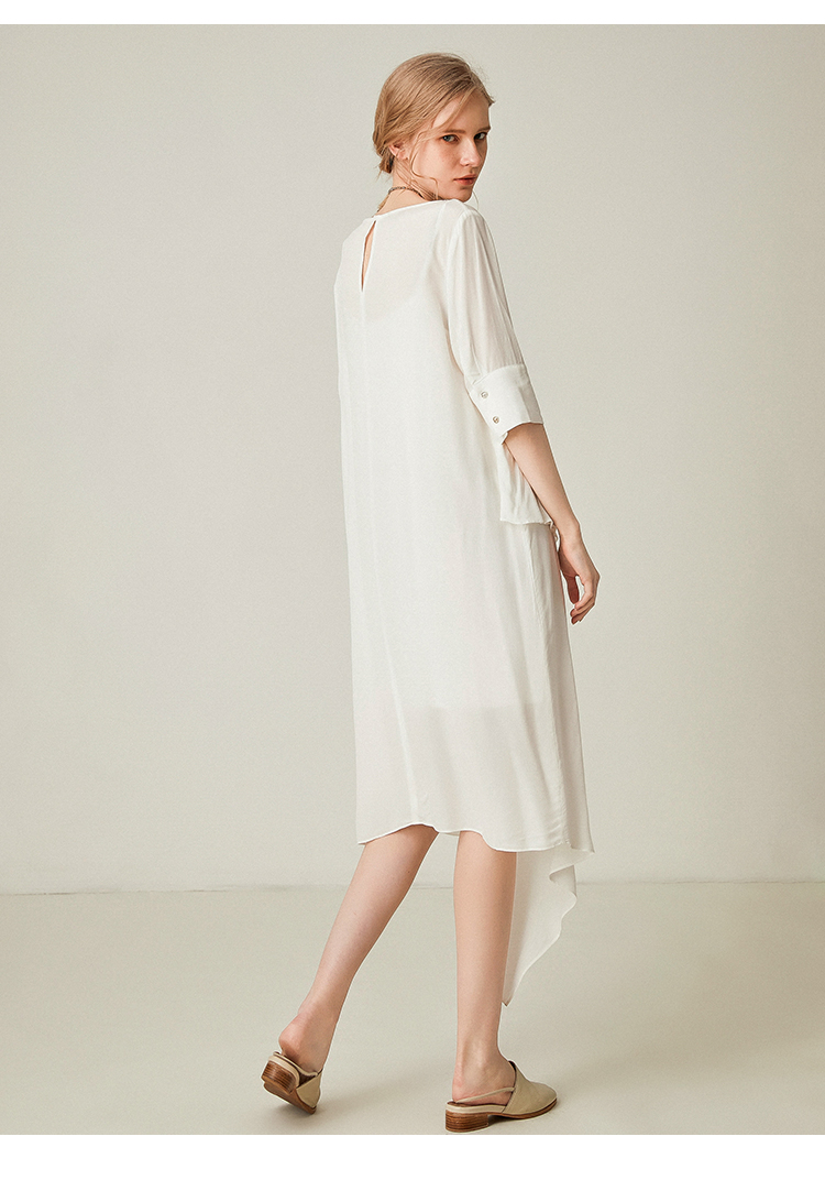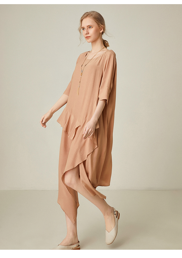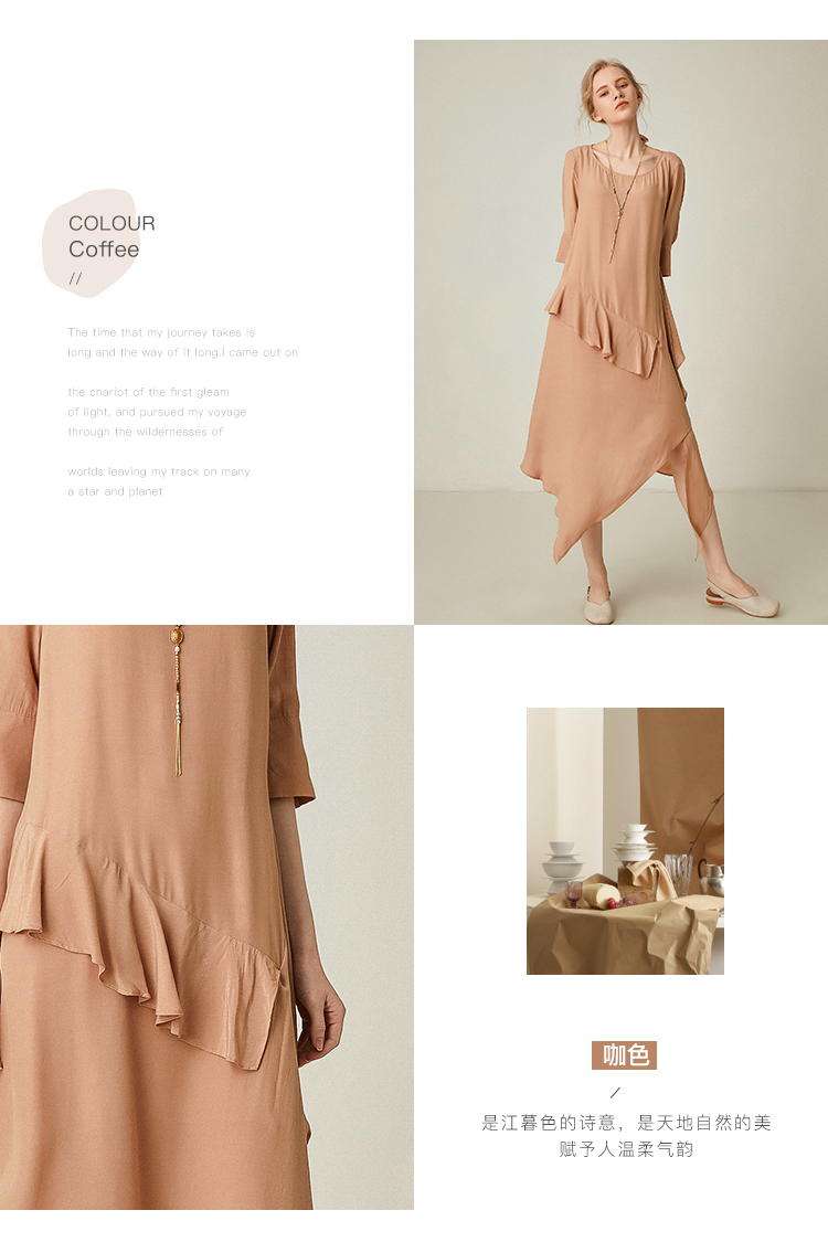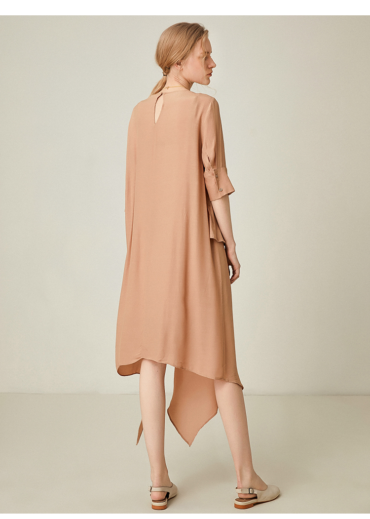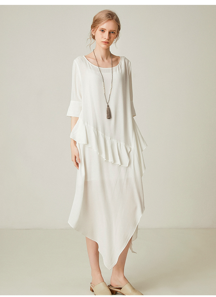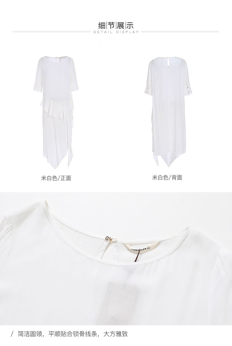 famecoco范可儿连衣裙2020新款夏五分袖显瘦不规则长裙F193FA042