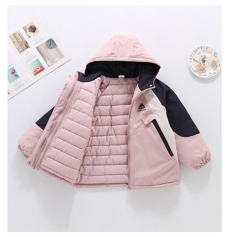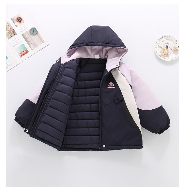 女童2025新款加棉加厚冲锋衣拼色秋冬季新款洋气连帽外套户外棉服 商品图4