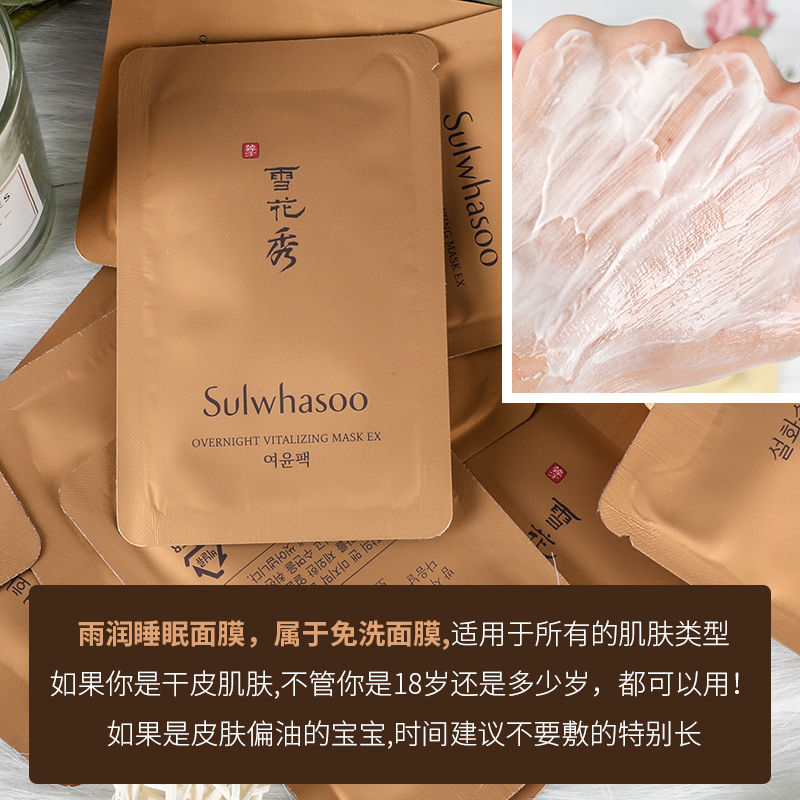 【爆款超低价预售 急单慎拍】韩国雪花秀与润雨润睡眠面膜小样熬夜去黄玉荣玉容撕拉面膜清洁
