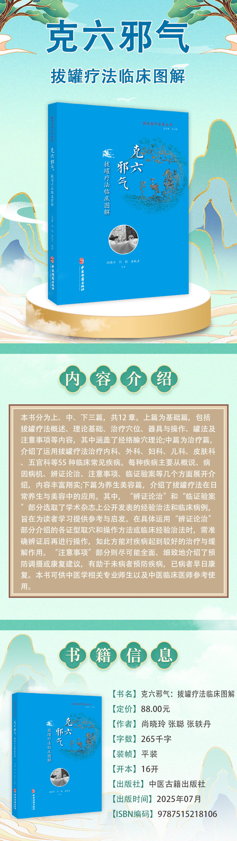克六邪气:拔罐疗法临床图解 传统医学宝库丛书 尚晓玲 张聪 张轶丹 主编 临床医学 中医古籍 9787515218106 中医古籍出版社