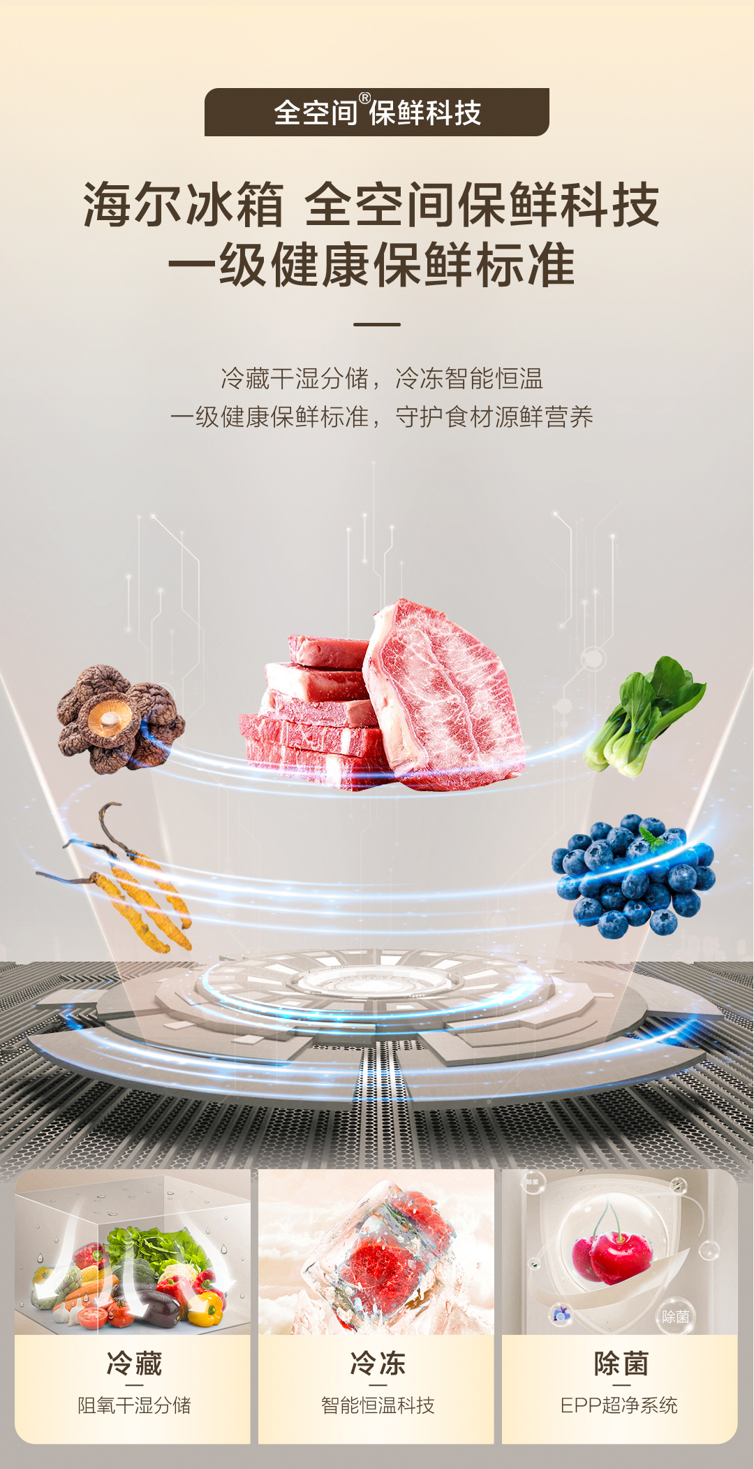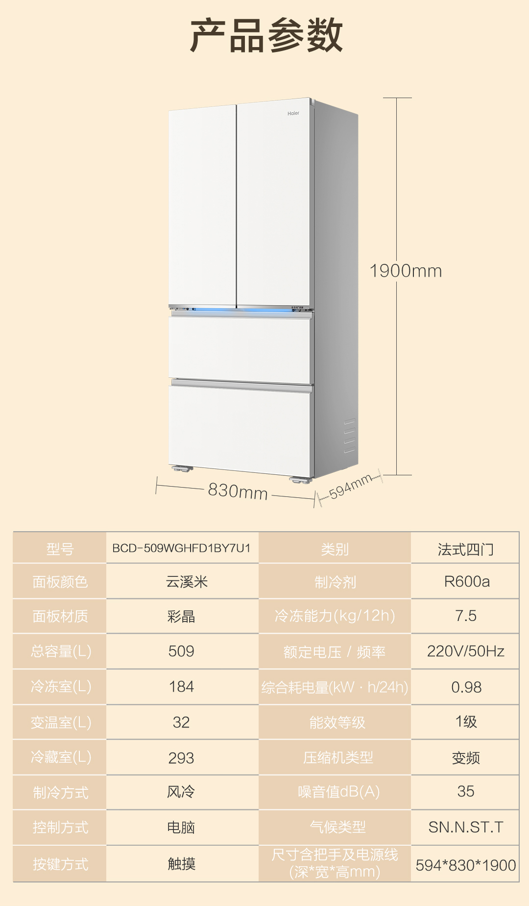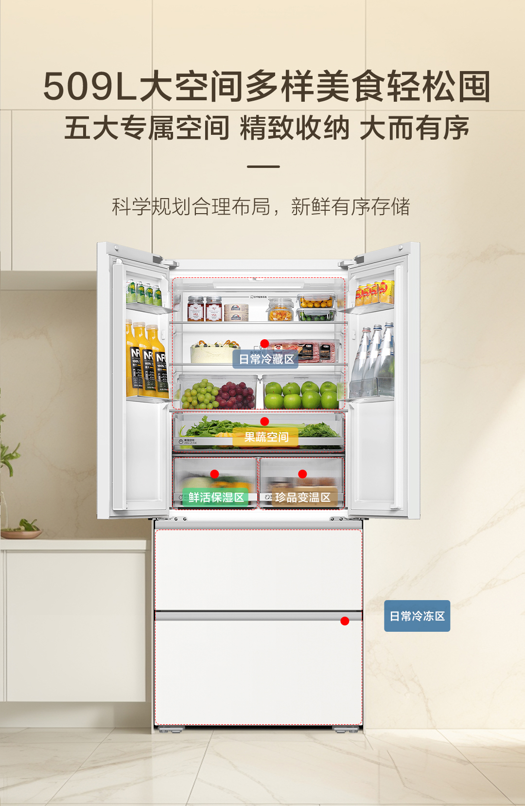 山茶花-海尔冰箱BCD-509WGHFD1BY7U1 全空间保鲜科技594mm专业超薄零嵌 阻氧干湿分储 EPP超净系统