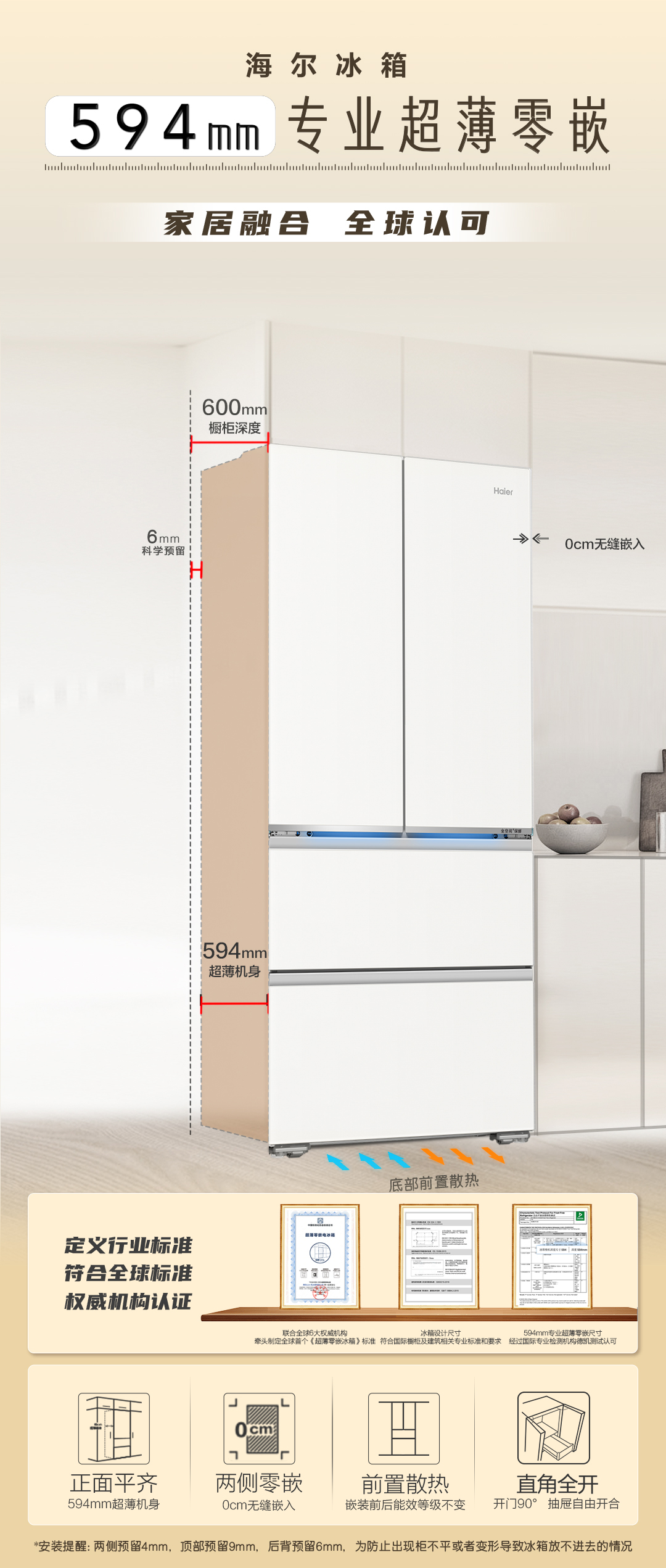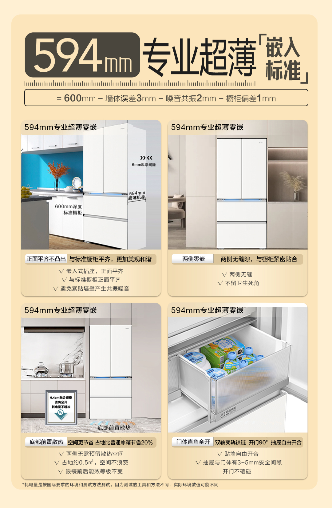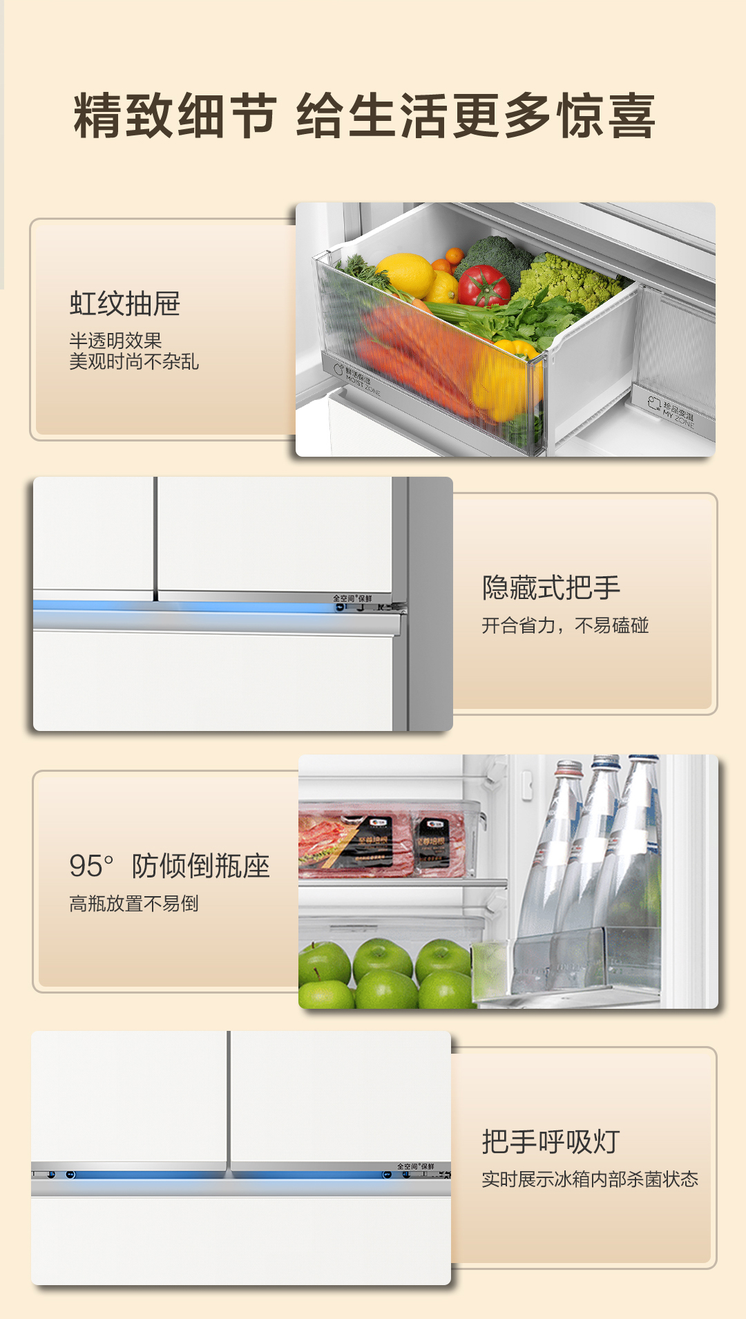 山茶花-海尔冰箱BCD-509WGHFD1BY7U1 全空间保鲜科技594mm专业超薄零嵌 阻氧干湿分储 EPP超净系统