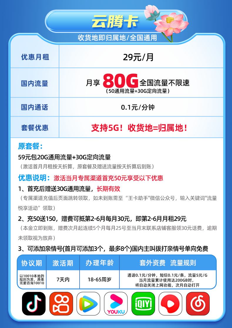 温馨提示:此卡当地派件员协助激活,请下单信息本人持有效身份证件取件激活!