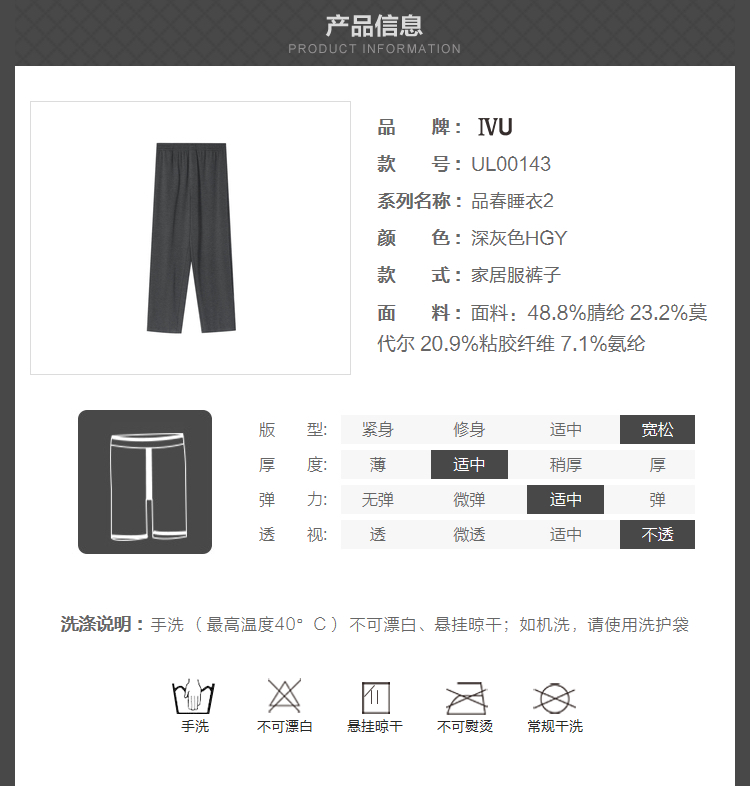 6F IVU男士春夏季新品睡裤舒适宽松可外穿家居长裤UL00143