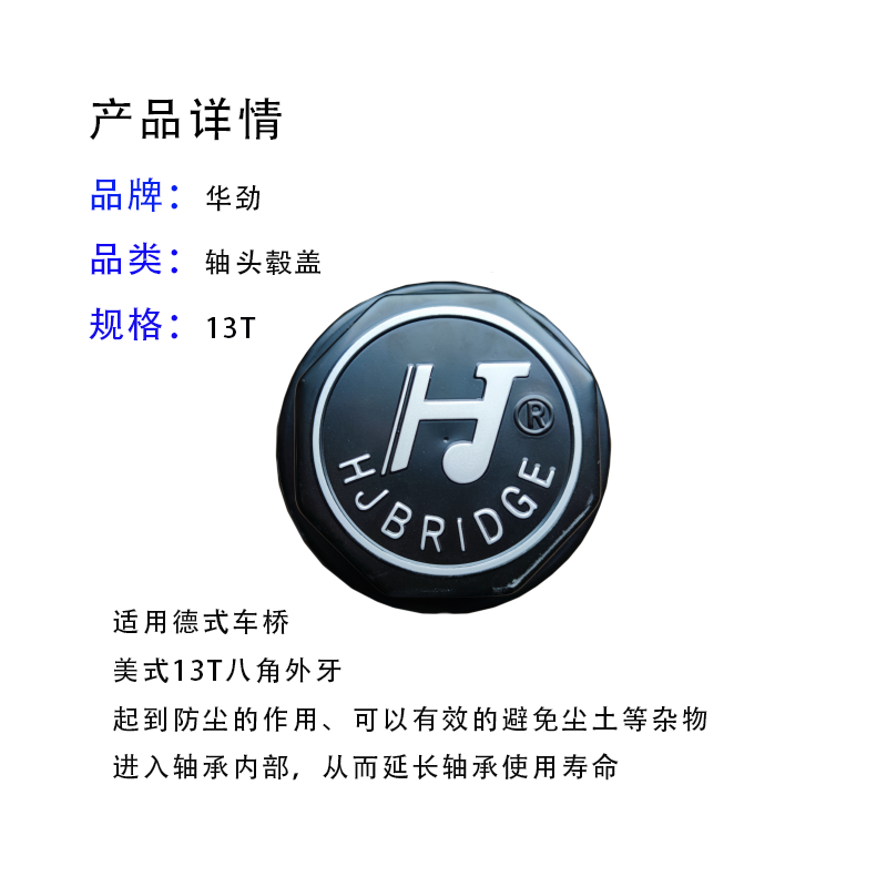 华劲美式13T轴头盖毂盖内外牙八角外牙黑底银白字防尘盖HJB601003