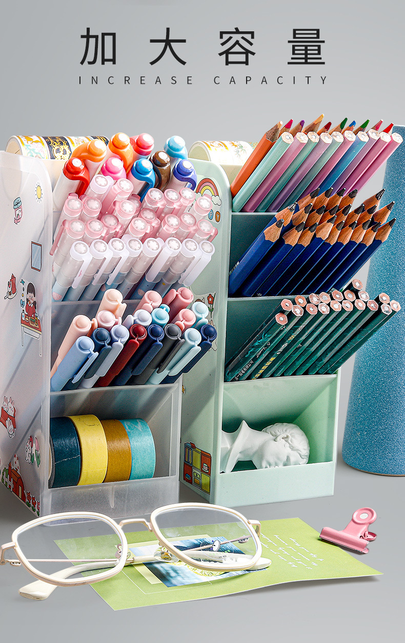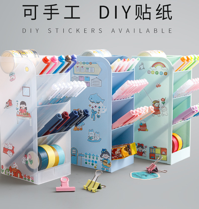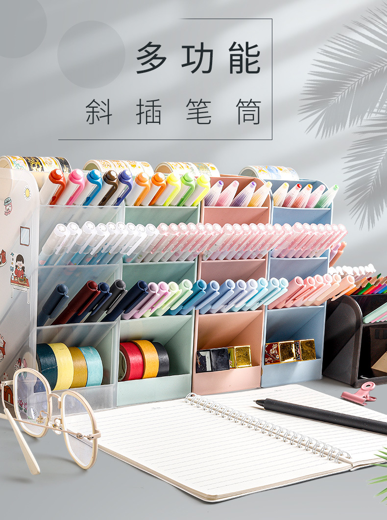 【加宽斜插笔筒】ins简约北欧个性透明文具收纳盒加宽五格学生用创意时尚可爱笔架女小清新彩色多功能桌面笔桶