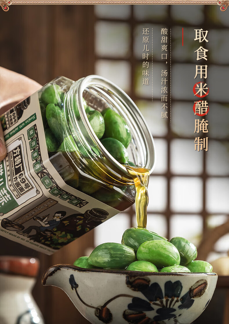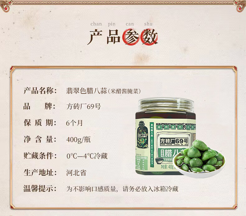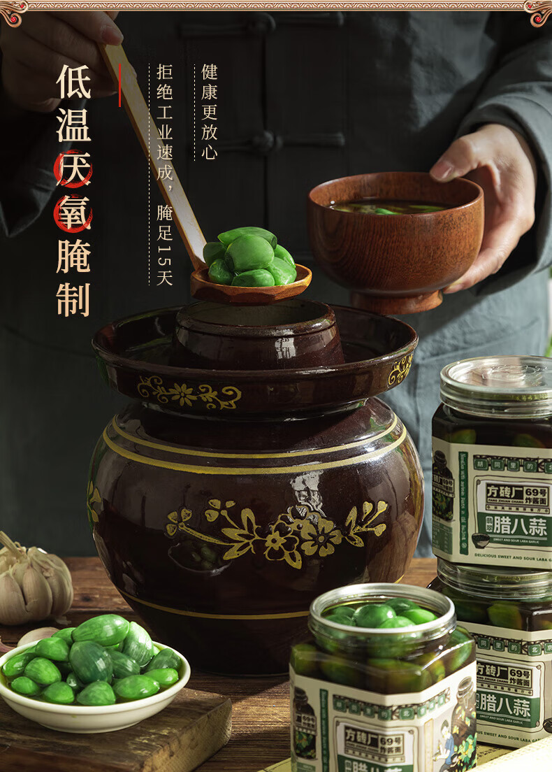 【老北京胡同风味儿】方砖厂69号翡翠腊八蒜400g*3瓶