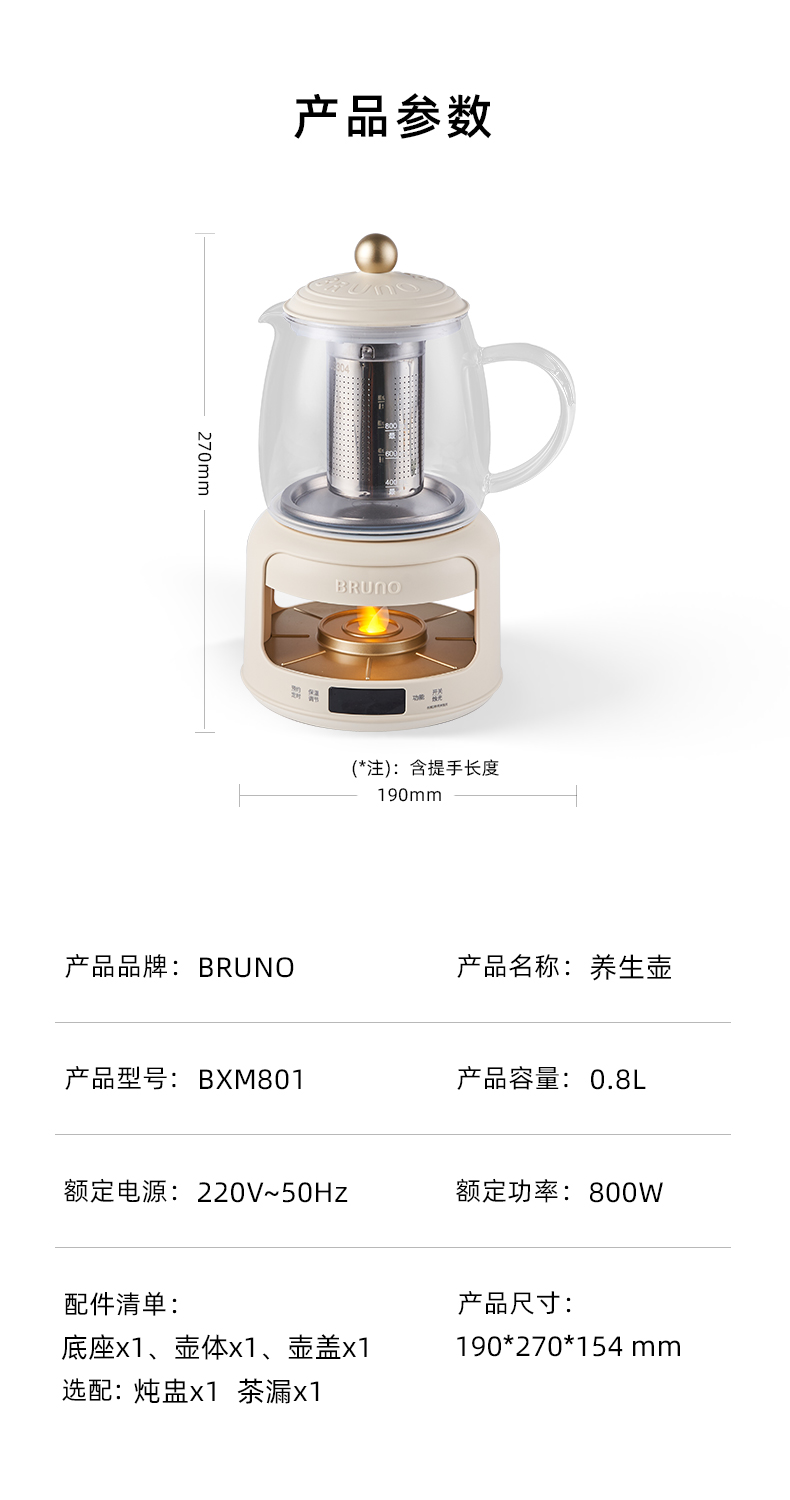 BRUNO养生壶纯钛炖煮一体家用多功能小型办公室迷你煮茶电热水壶