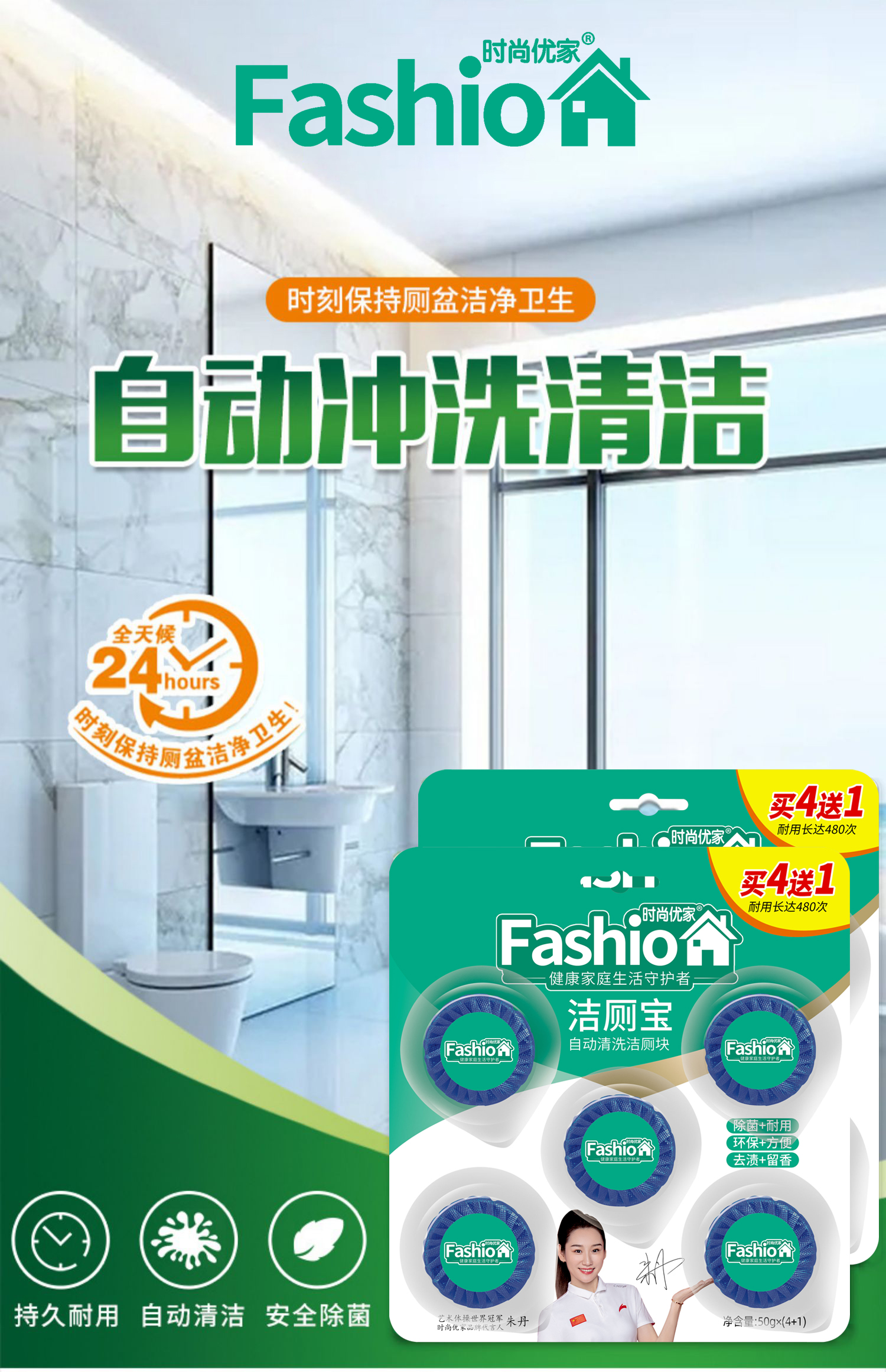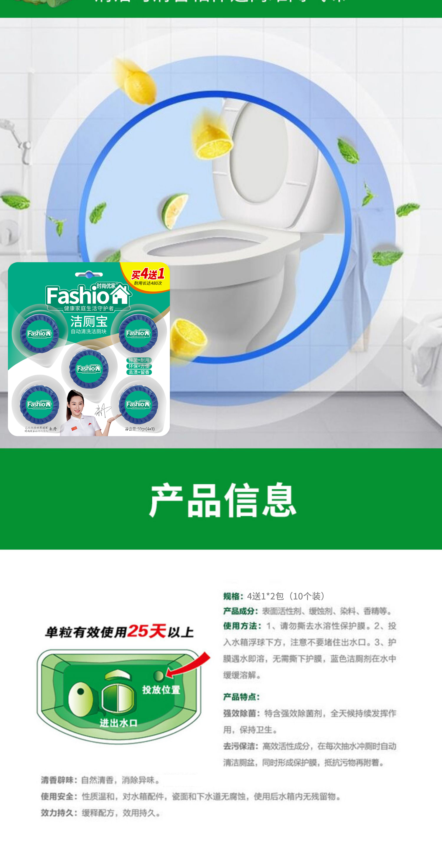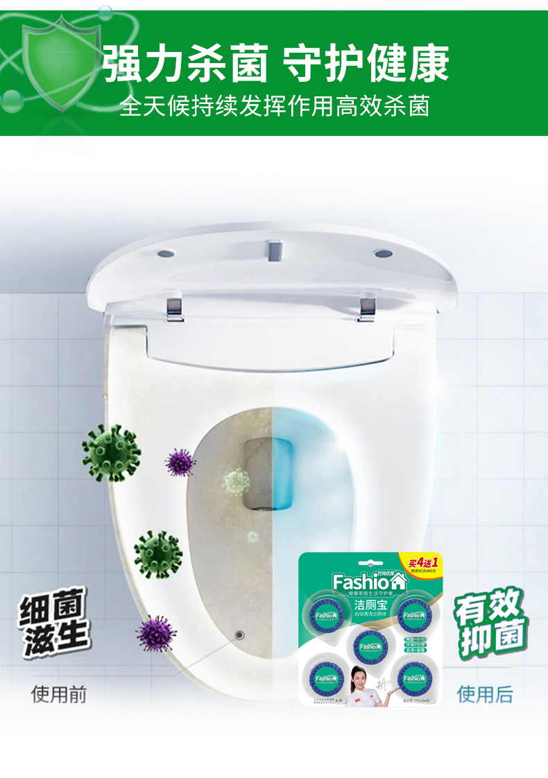 时尚优家洁厕宝清洁除菌除味4送1*2包(10个)