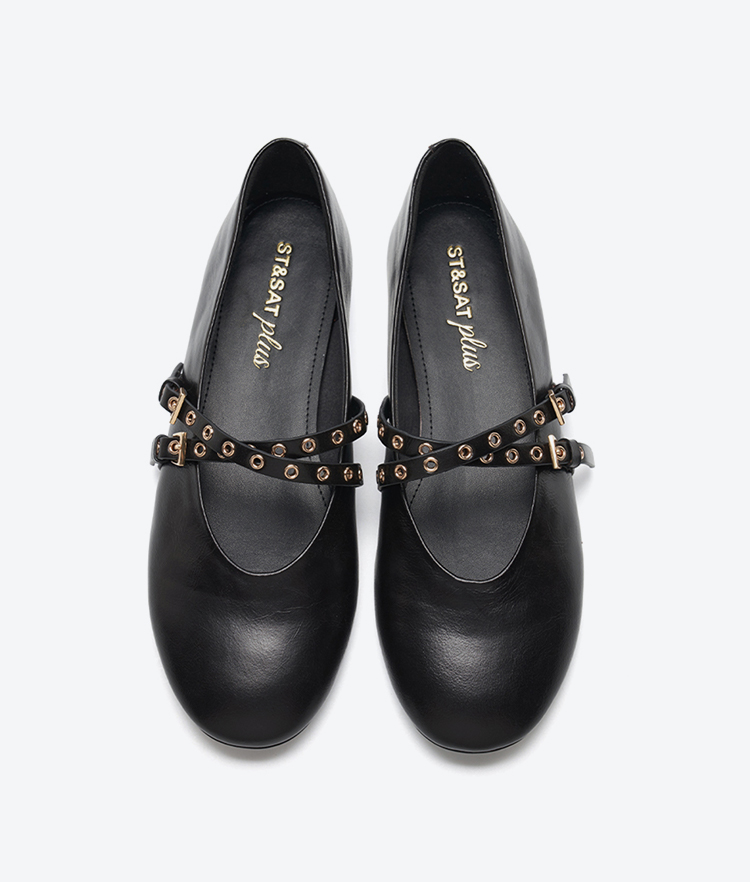 星期六26春新款铆钉绊带芭蕾玛丽珍SSE1111101