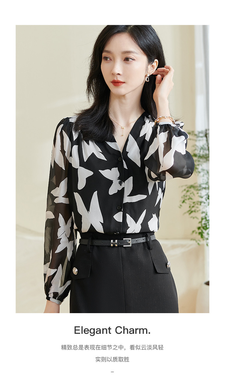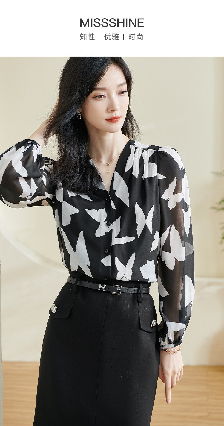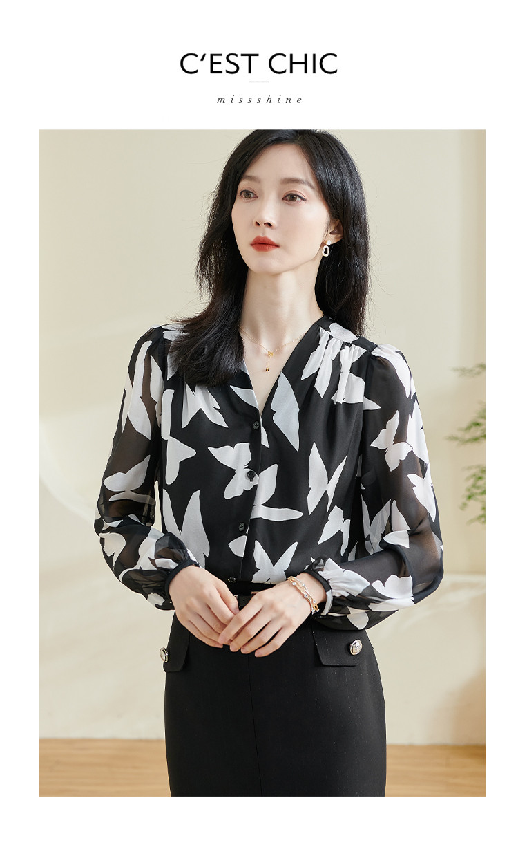 剩S/XL 米思阳【桑蚕丝蝴蝶印花衬衫】2026春季新款时尚优雅气质宽松衬衣0412