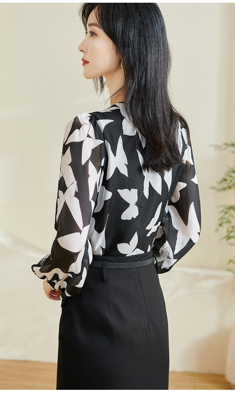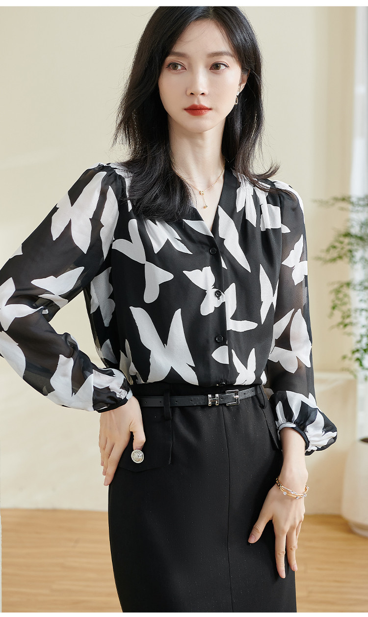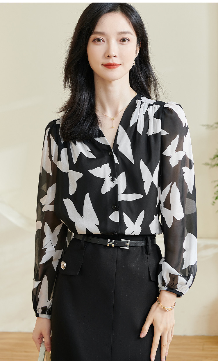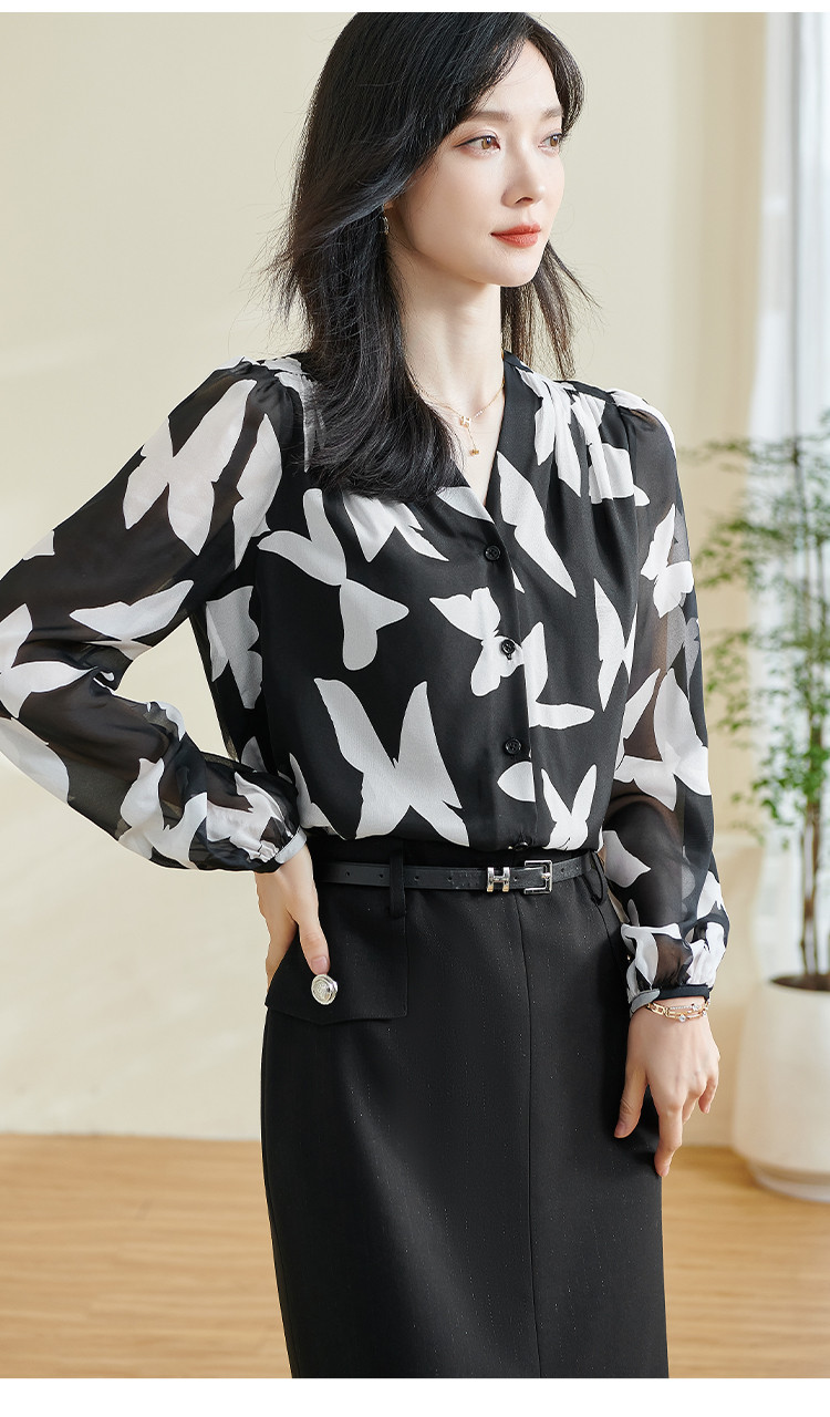 剩S/XL 米思阳【桑蚕丝蝴蝶印花衬衫】2026春季新款时尚优雅气质宽松衬衣0412
