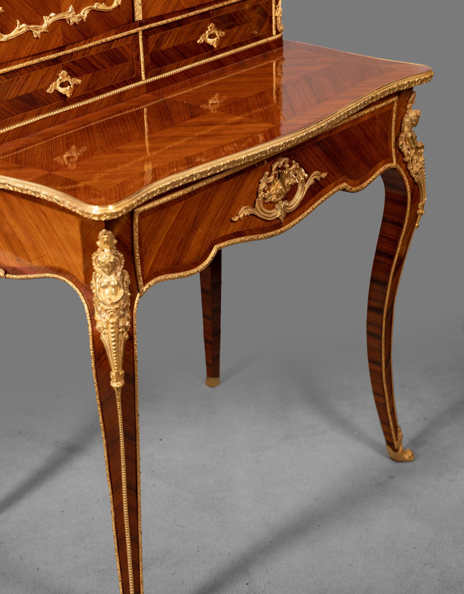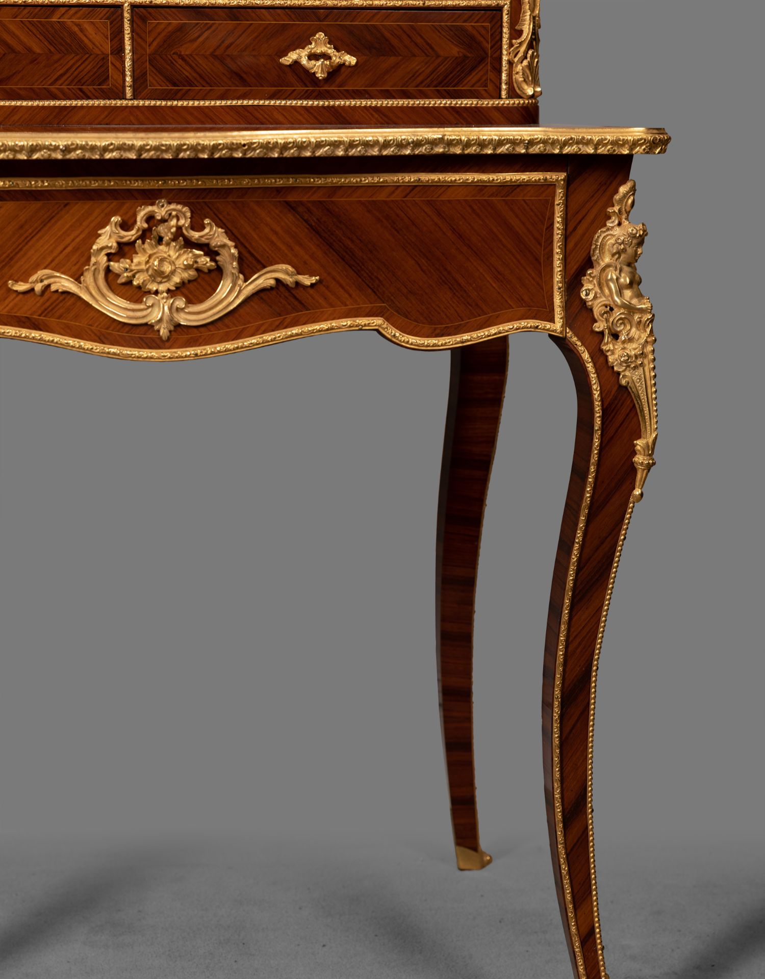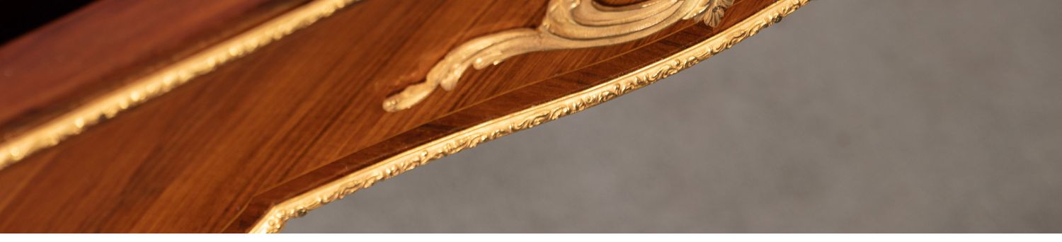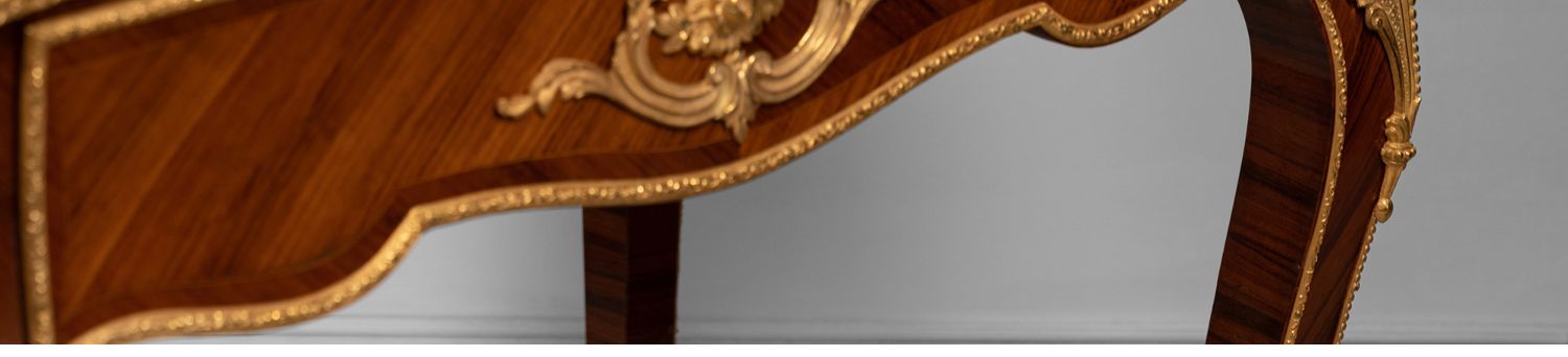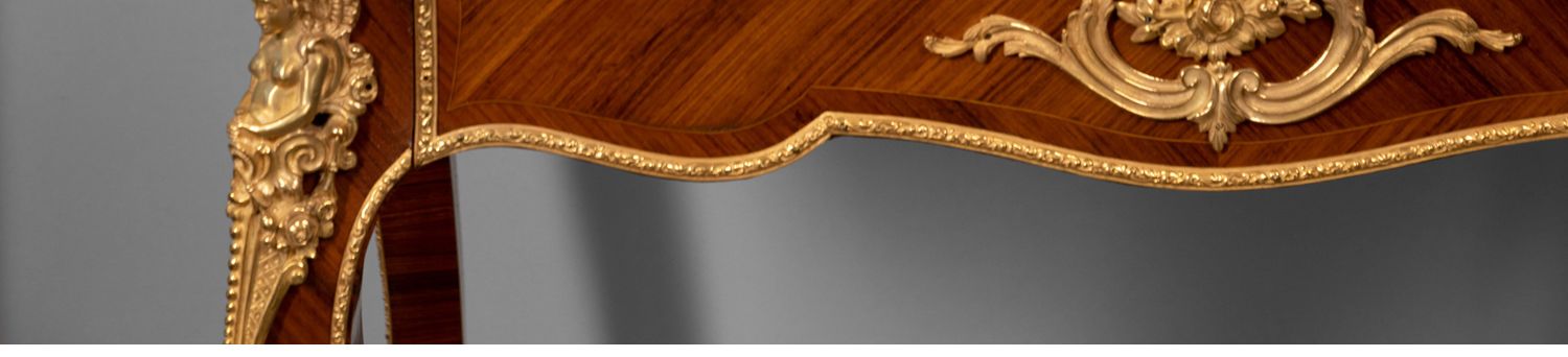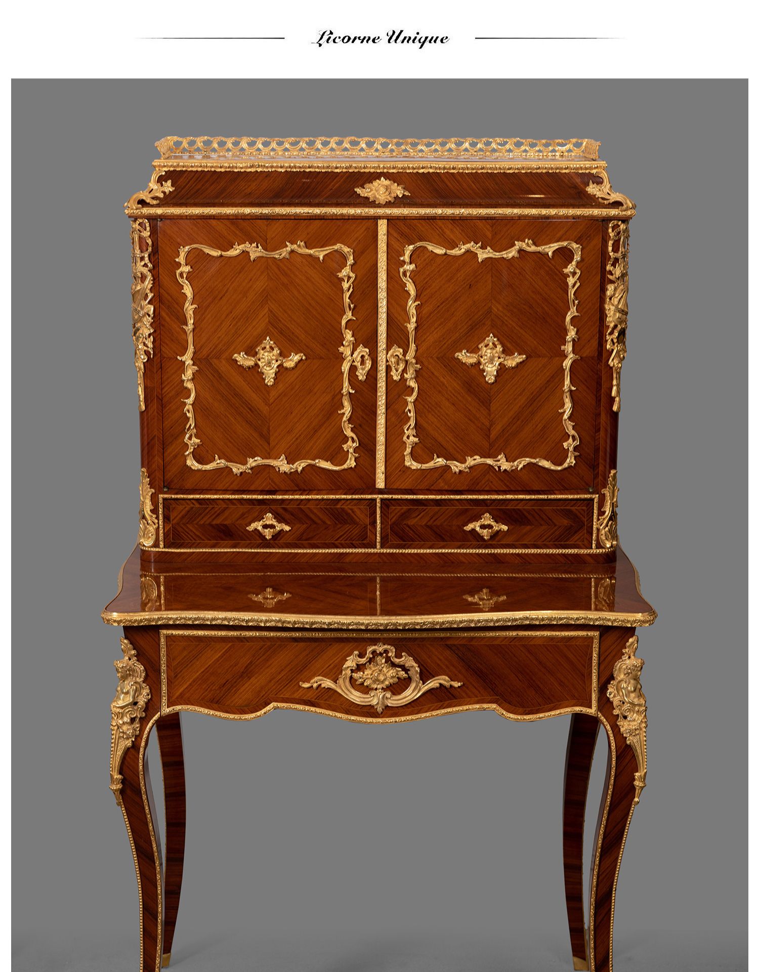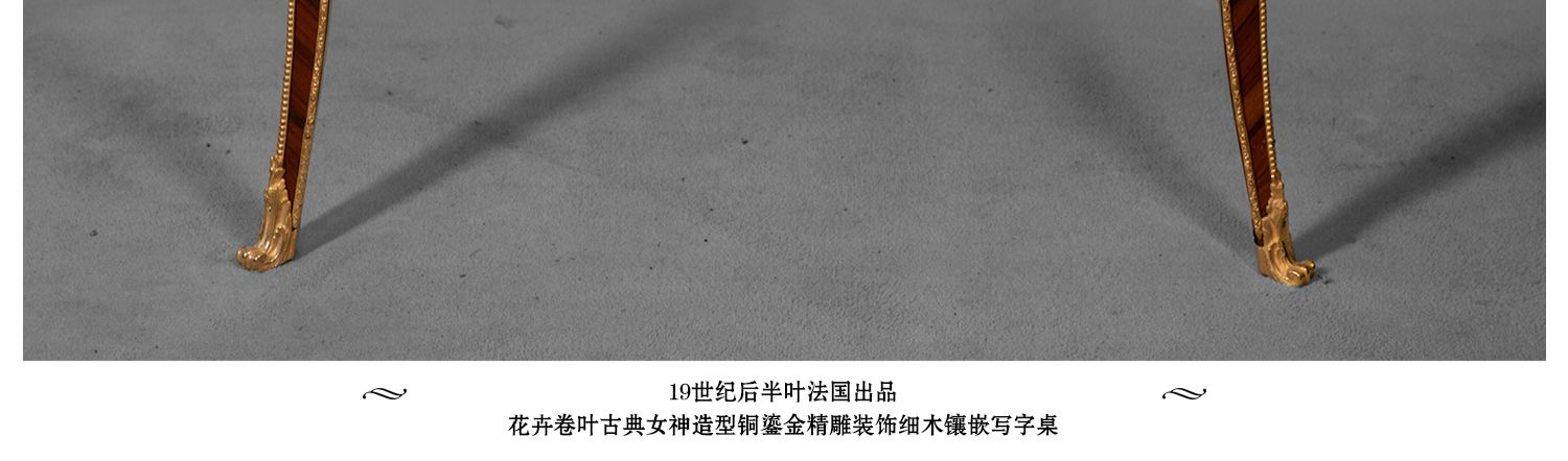 独角鹿西洋古董家具法国花卉卷叶古典女神铜鎏金细木镶嵌写字桌