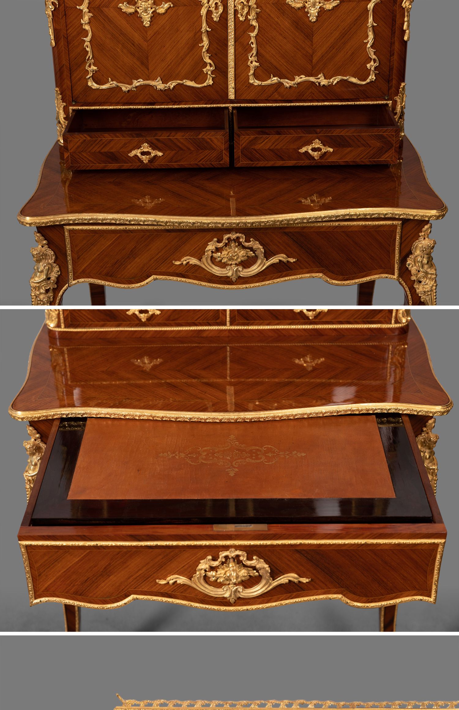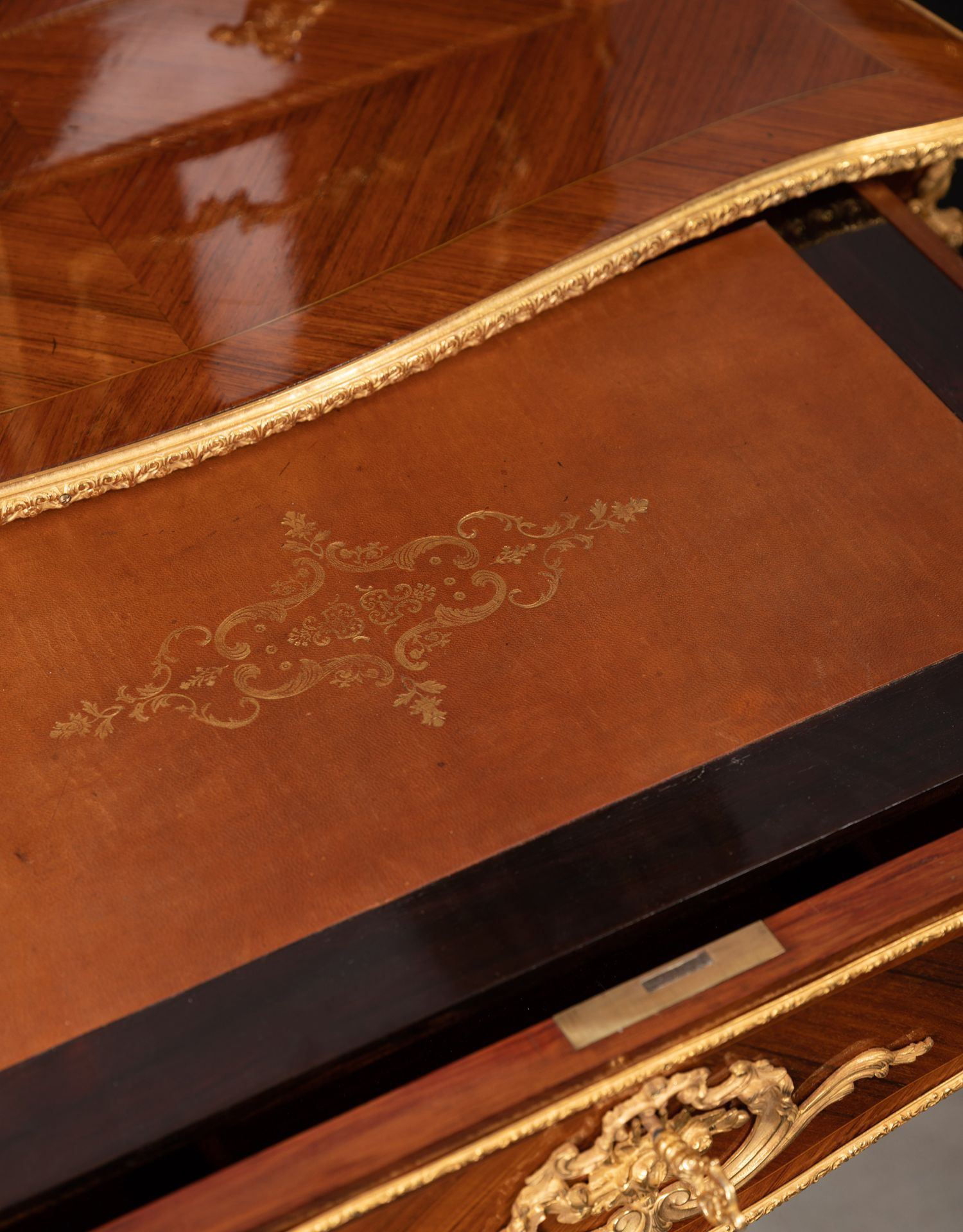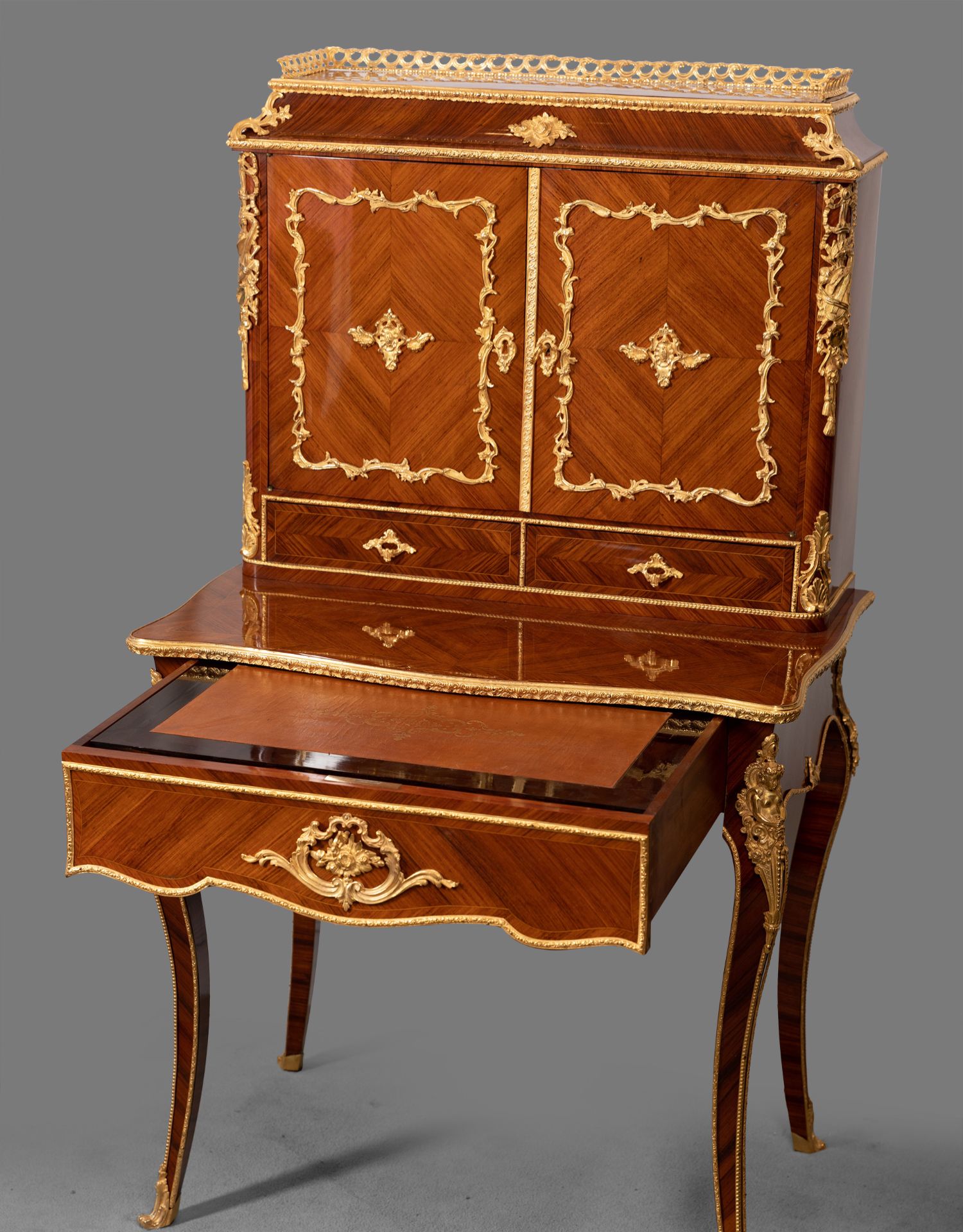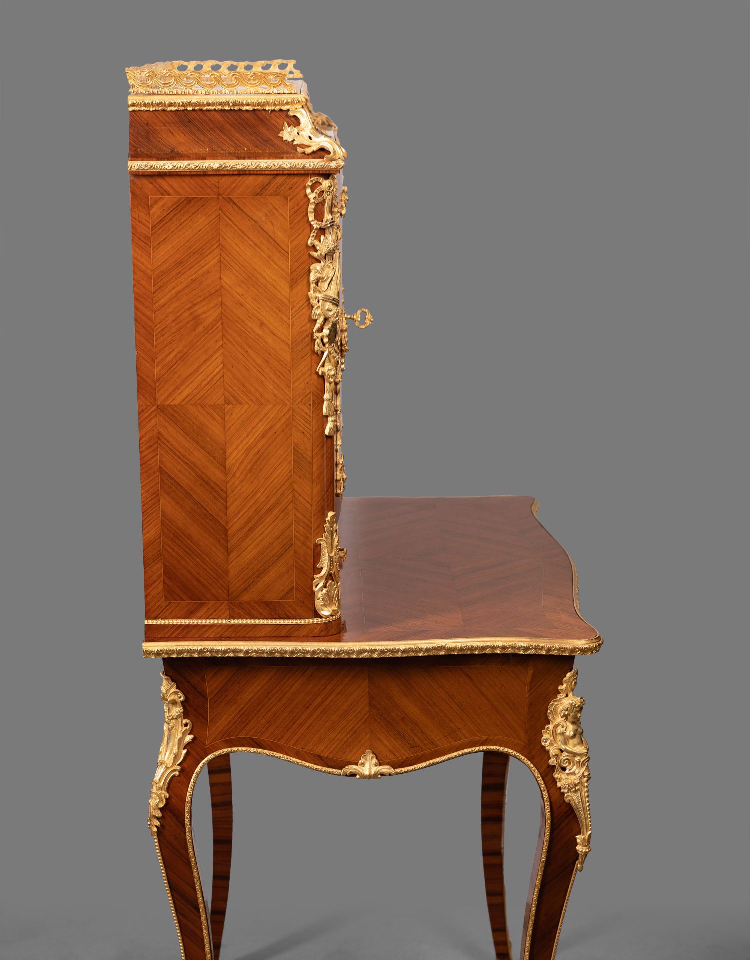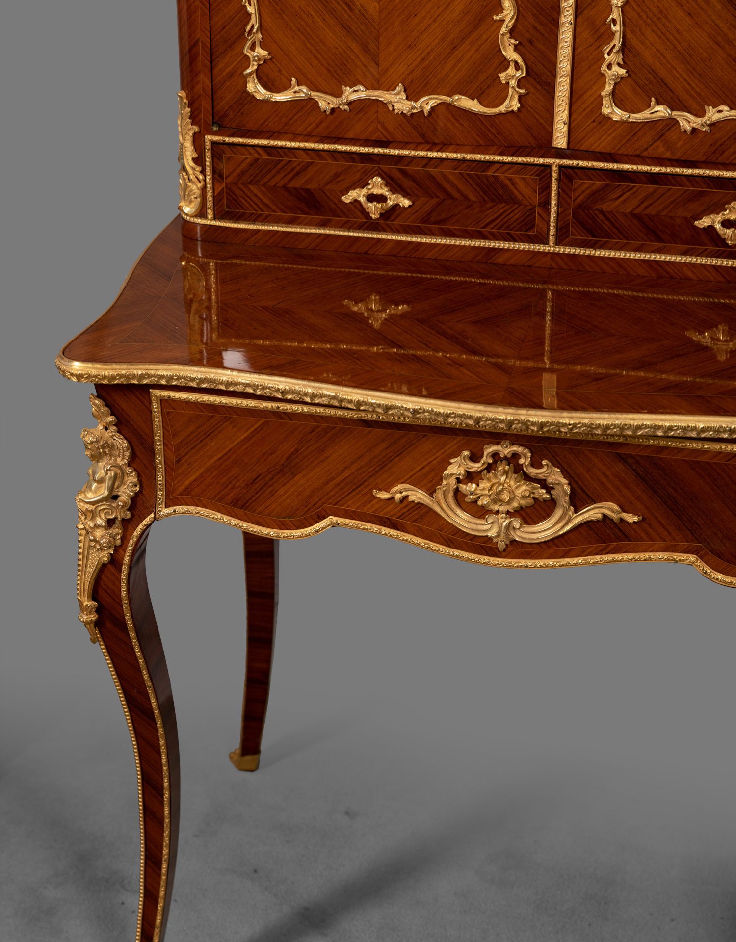 独角鹿西洋古董家具法国花卉卷叶古典女神铜鎏金细木镶嵌写字桌