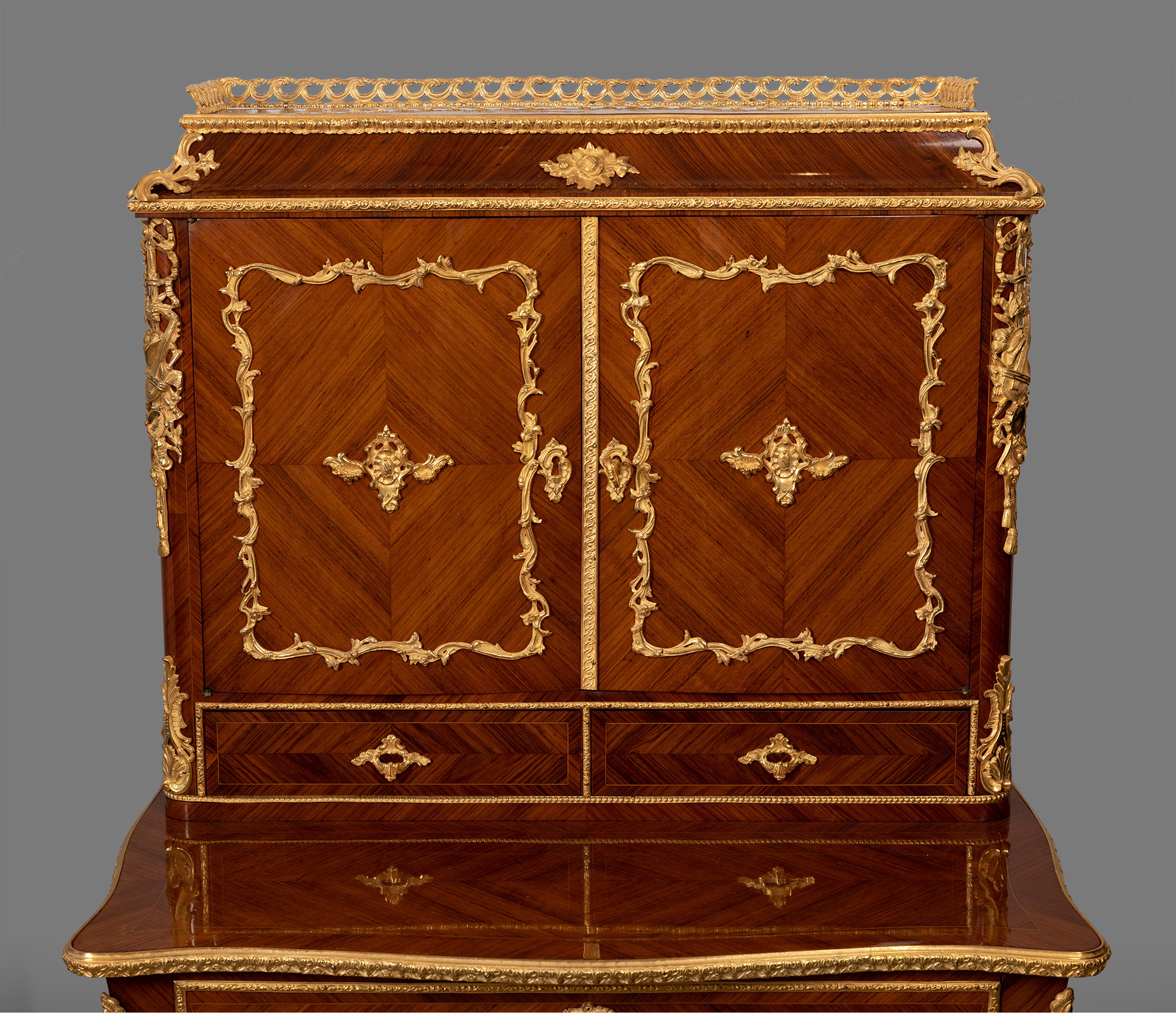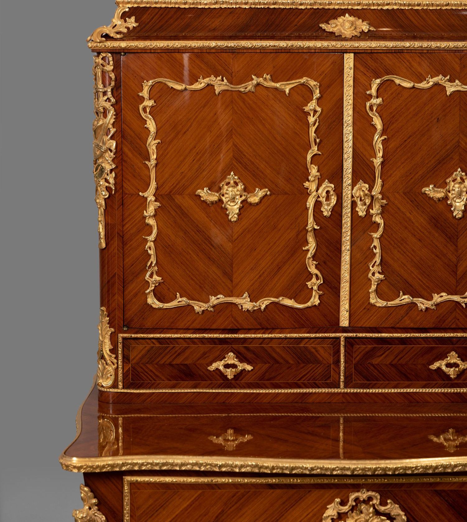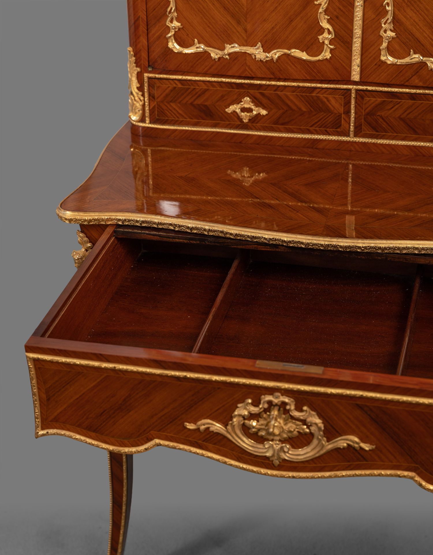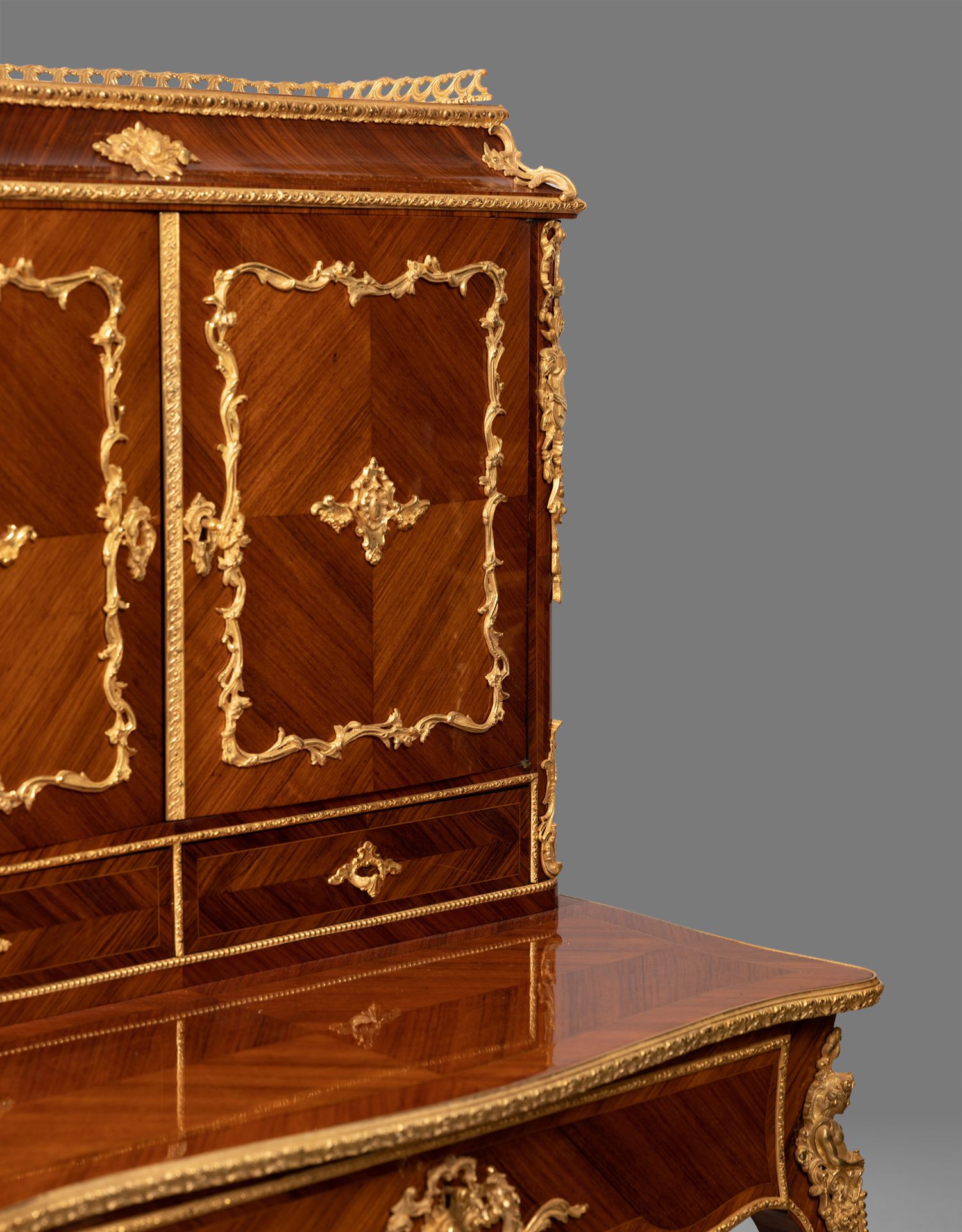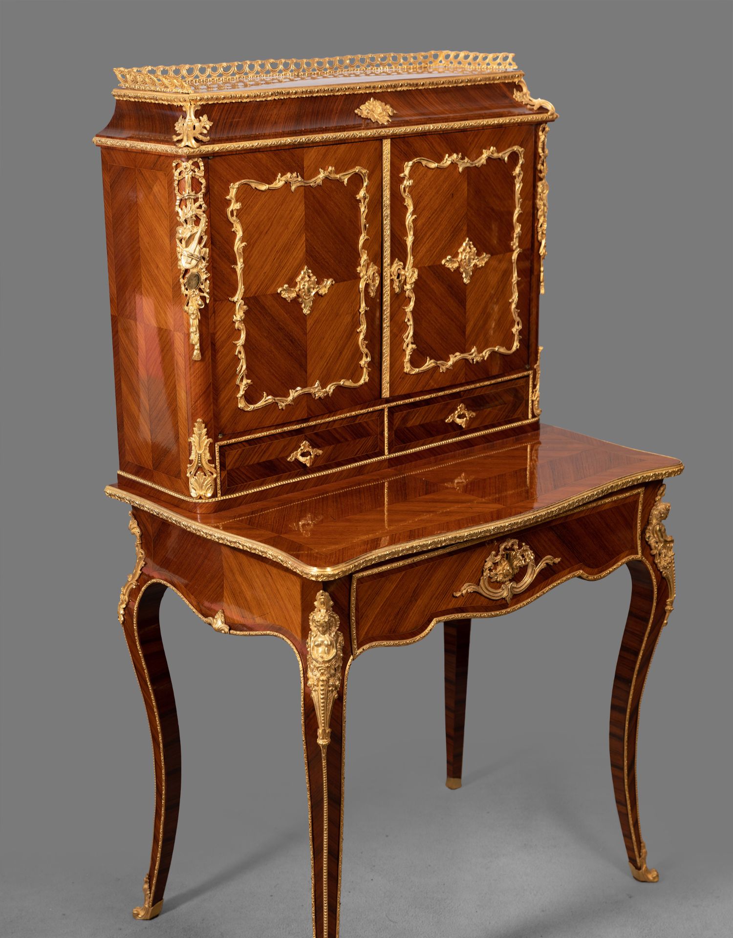 独角鹿西洋古董家具法国花卉卷叶古典女神铜鎏金细木镶嵌写字桌