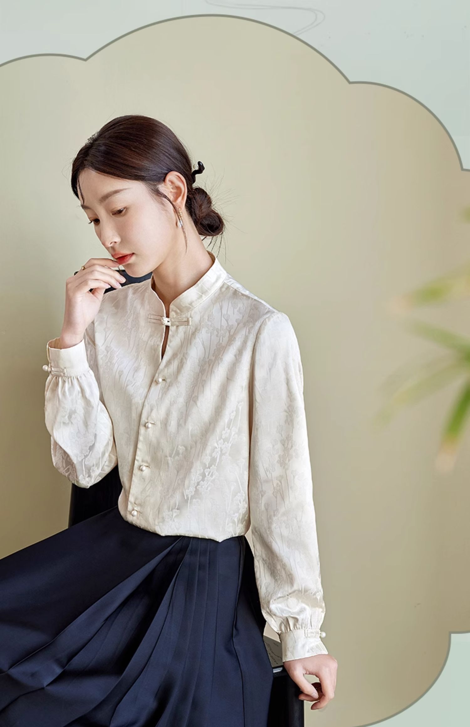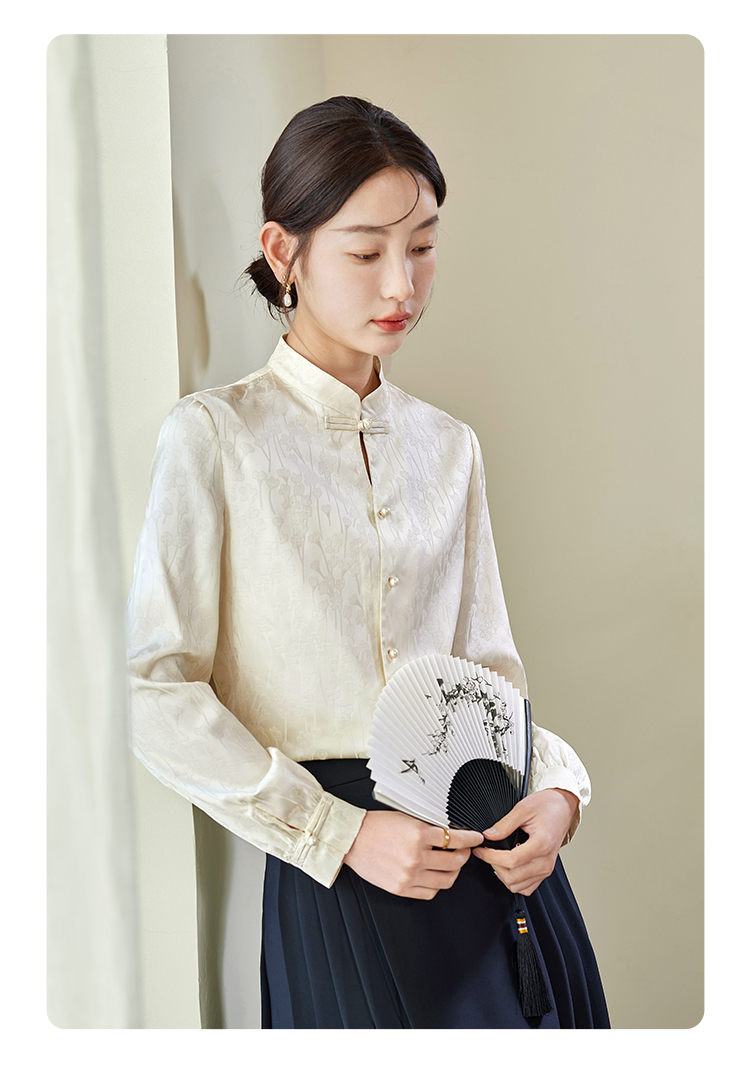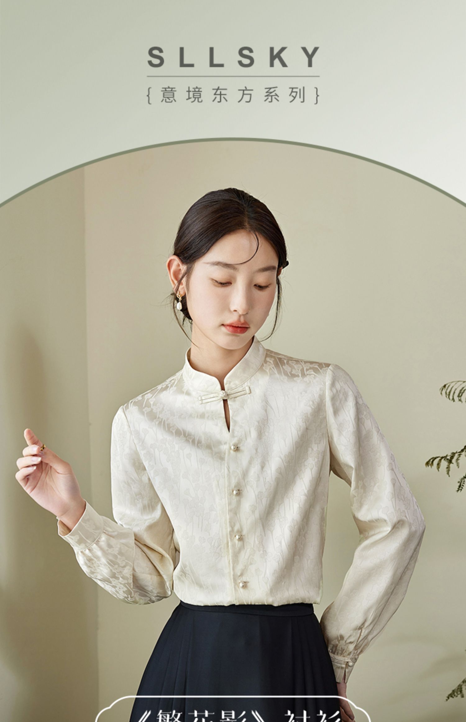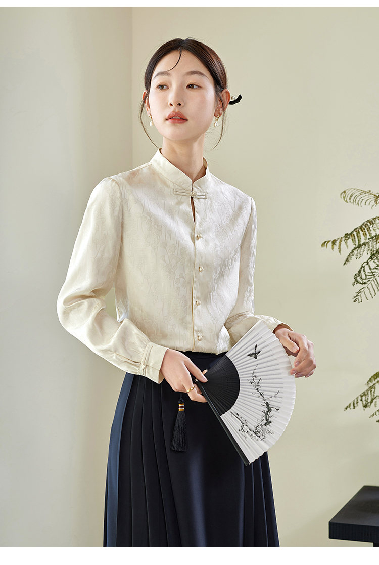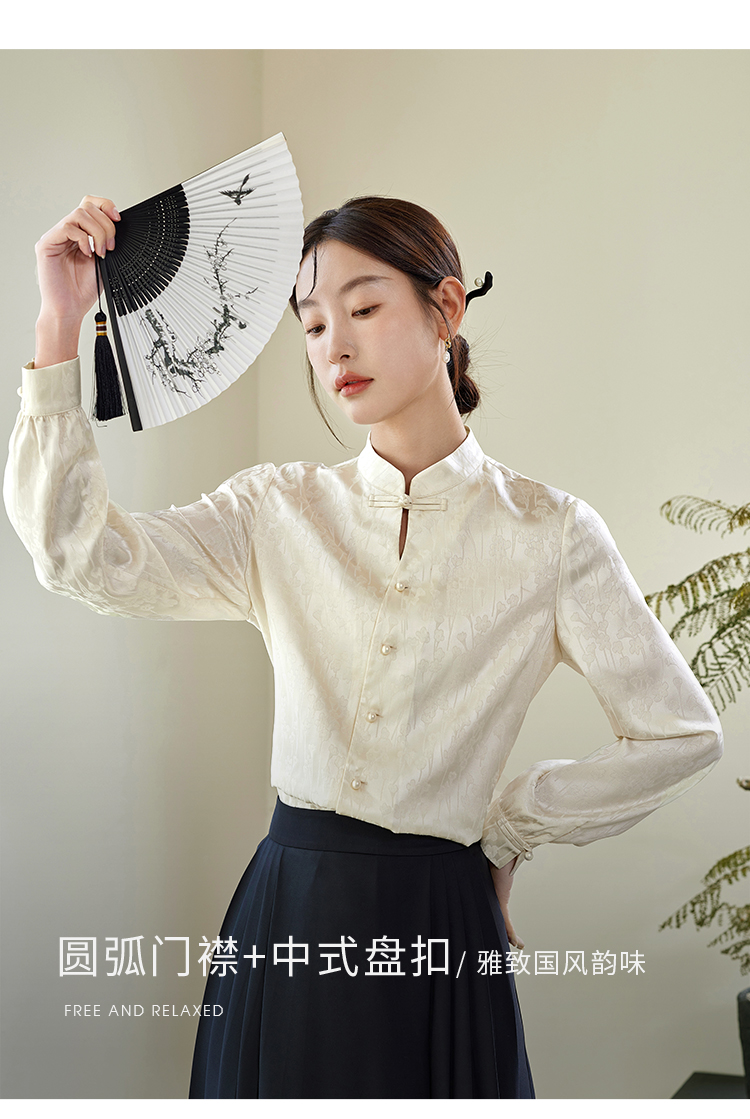 【年终特卖】熙世界新中式盘扣衬衫高级感缎面国风提花长袖衬衣2025秋日新款