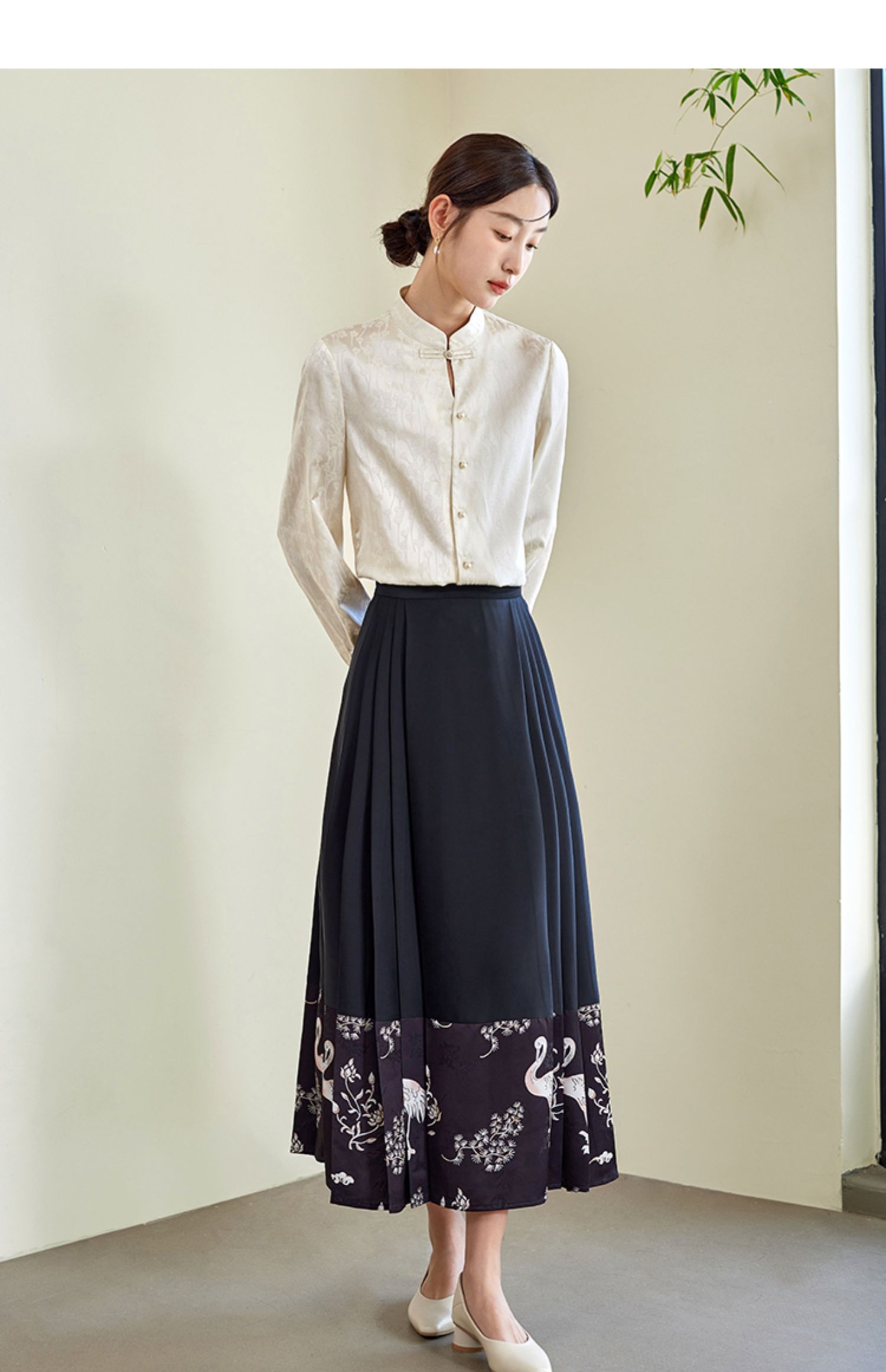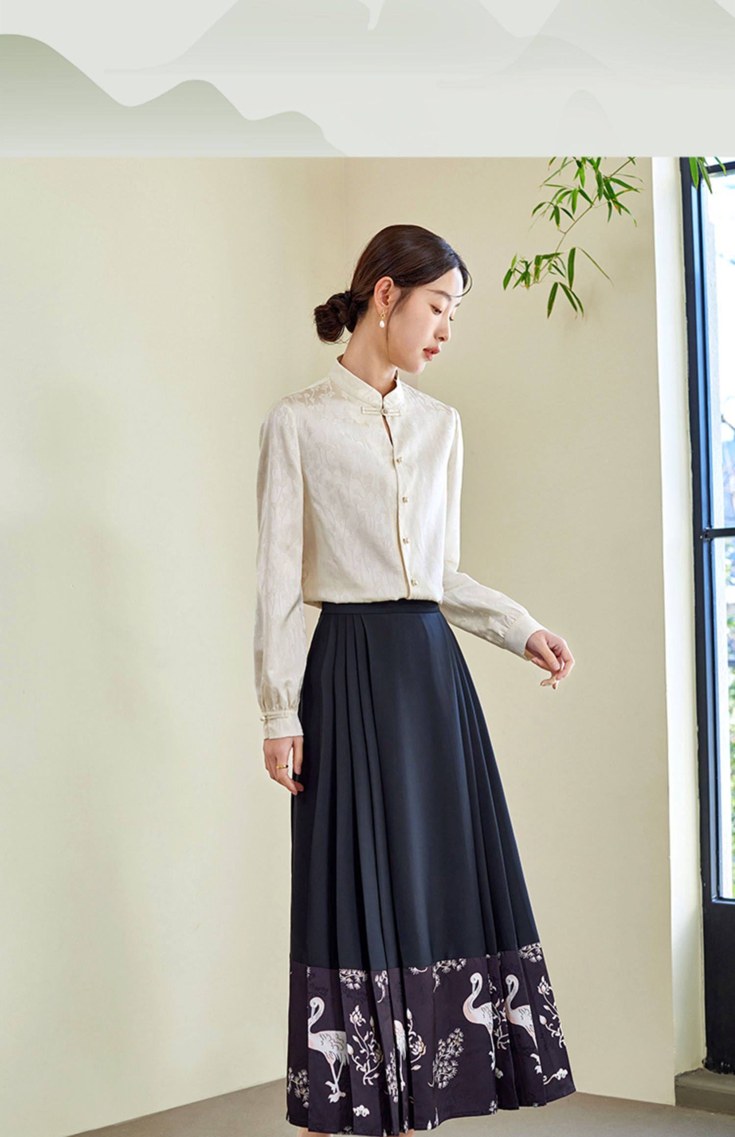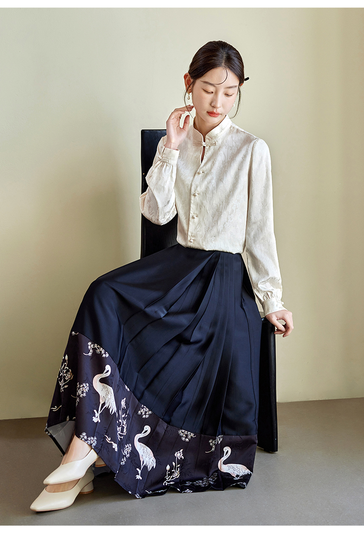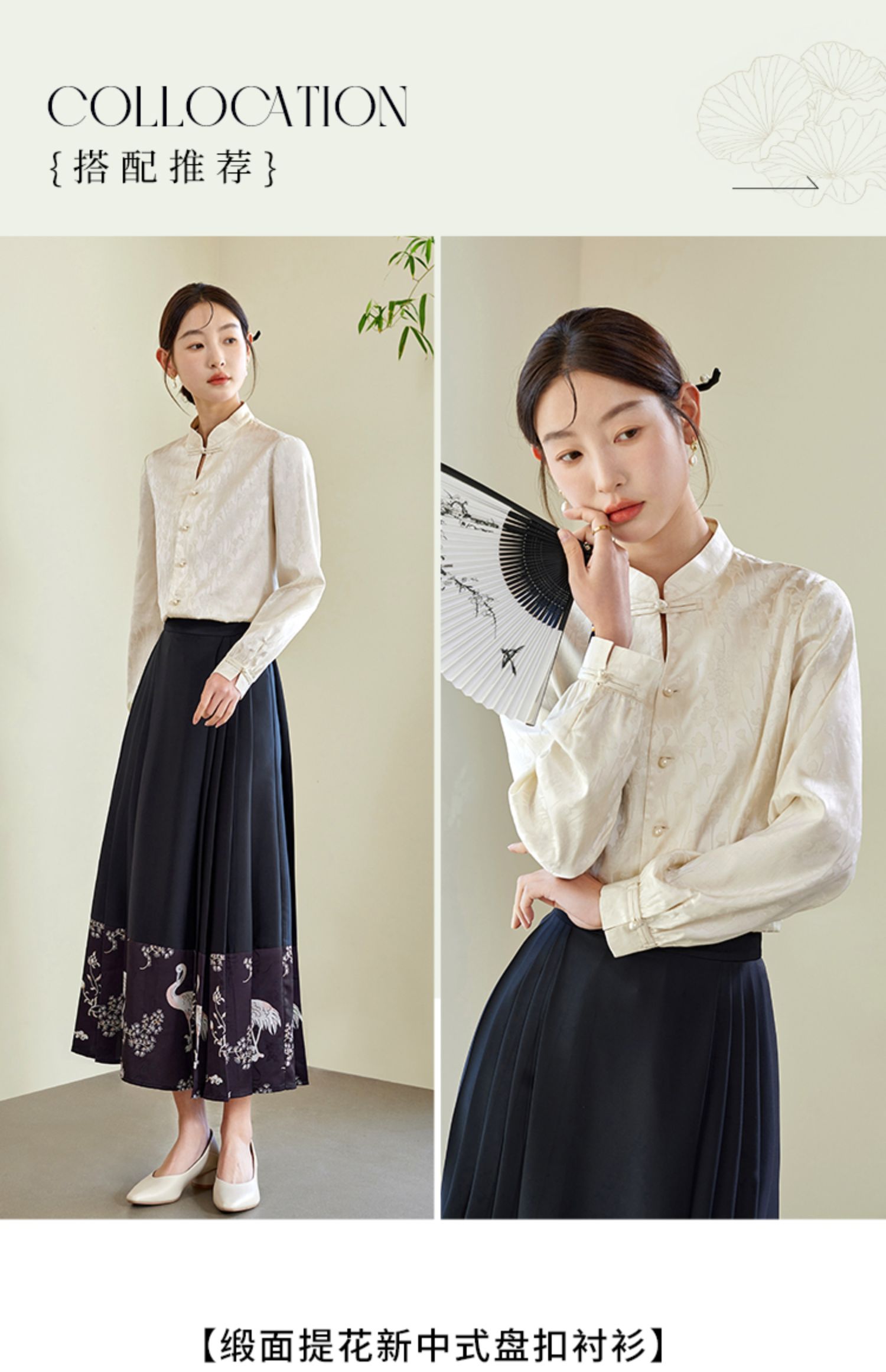 【年终特卖】熙世界新中式盘扣衬衫高级感缎面国风提花长袖衬衣2025秋日新款