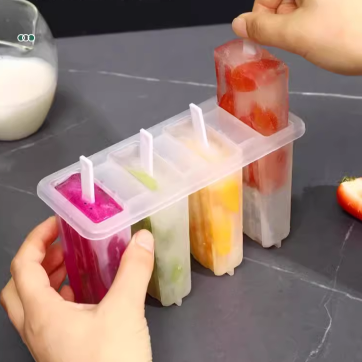 【小号】4连塑料冰棍模 家用自制冰棒雪糕模具 DIY雪糕模 带盖
