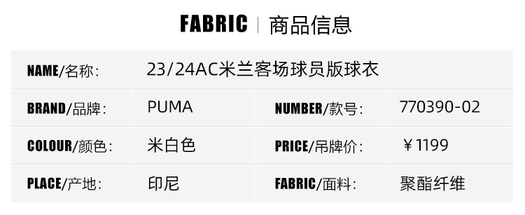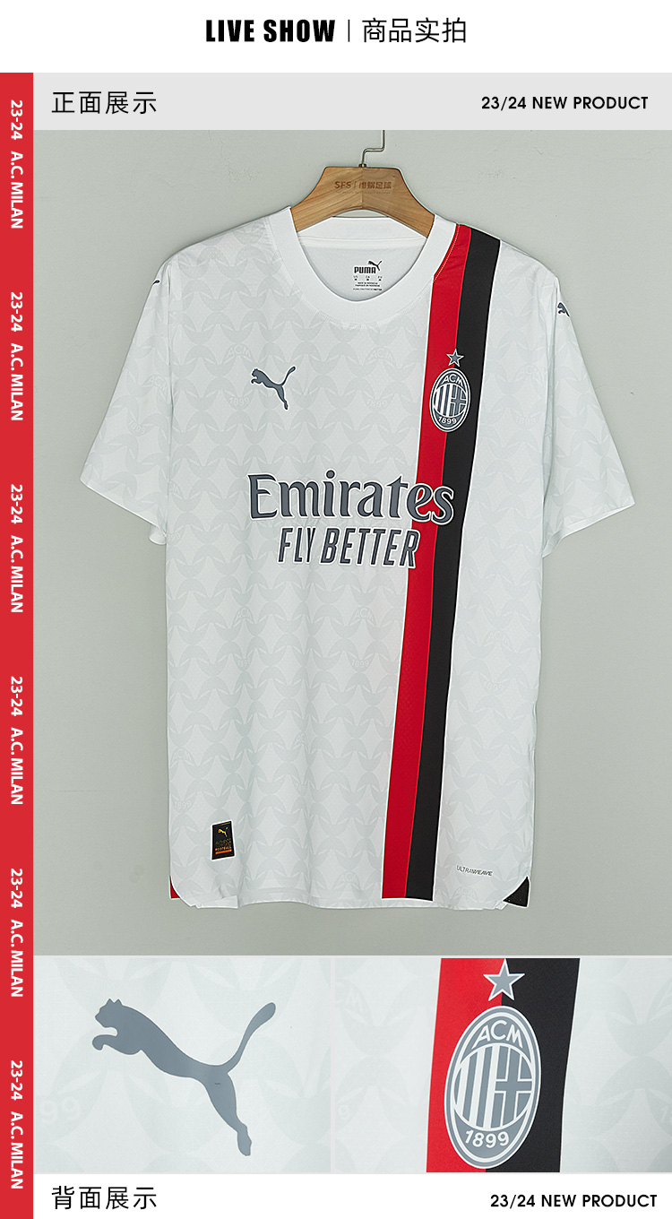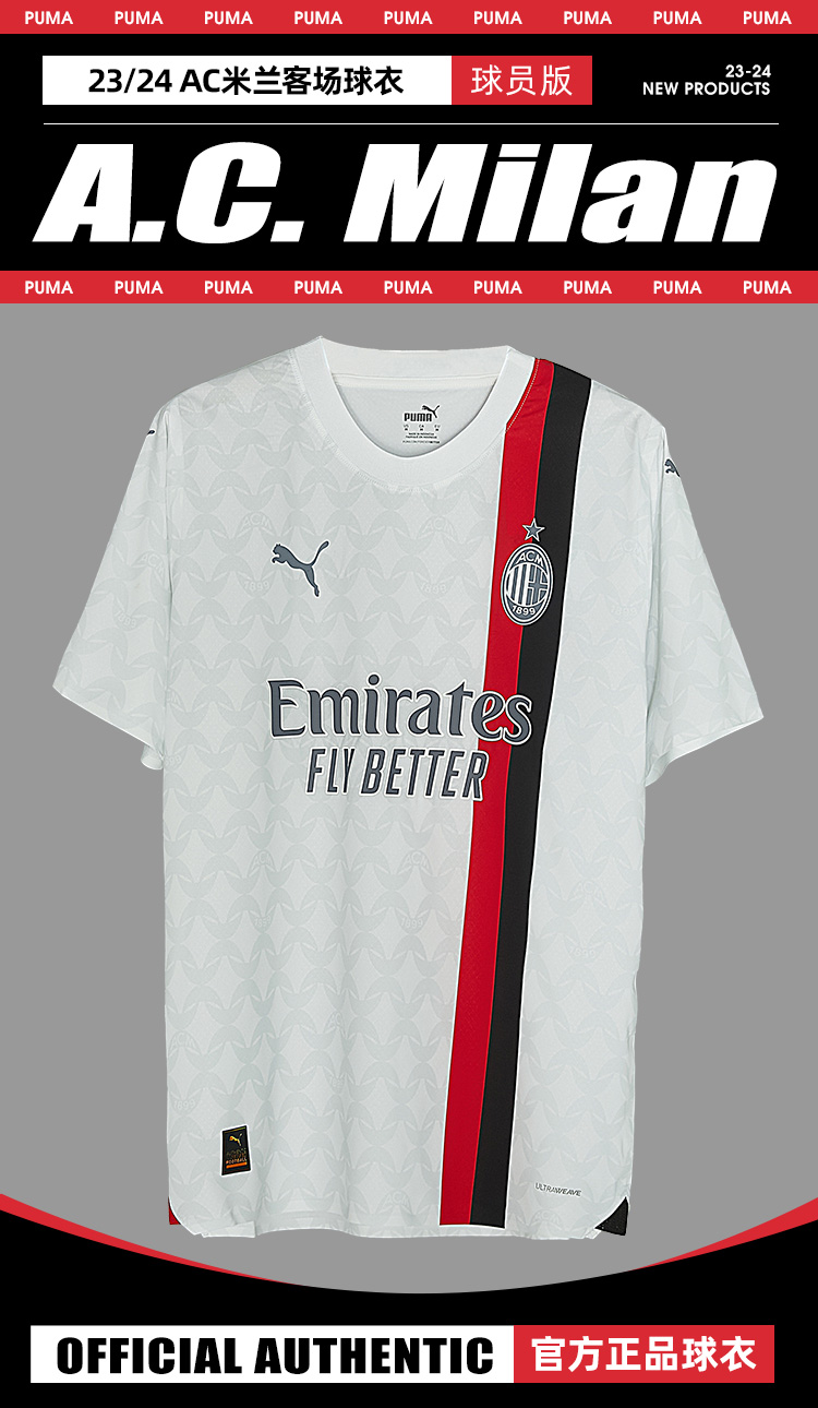 【送球员印号】SFS彪马23/24 AC米兰客场球员版球衣 莱奥足球服770390-02