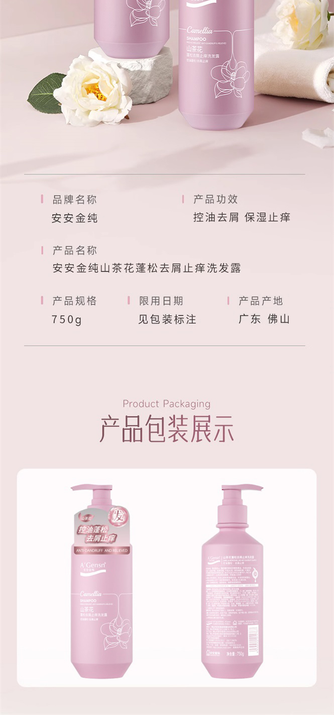 安安金纯山茶花蓬松去屑止痒洗发露750g