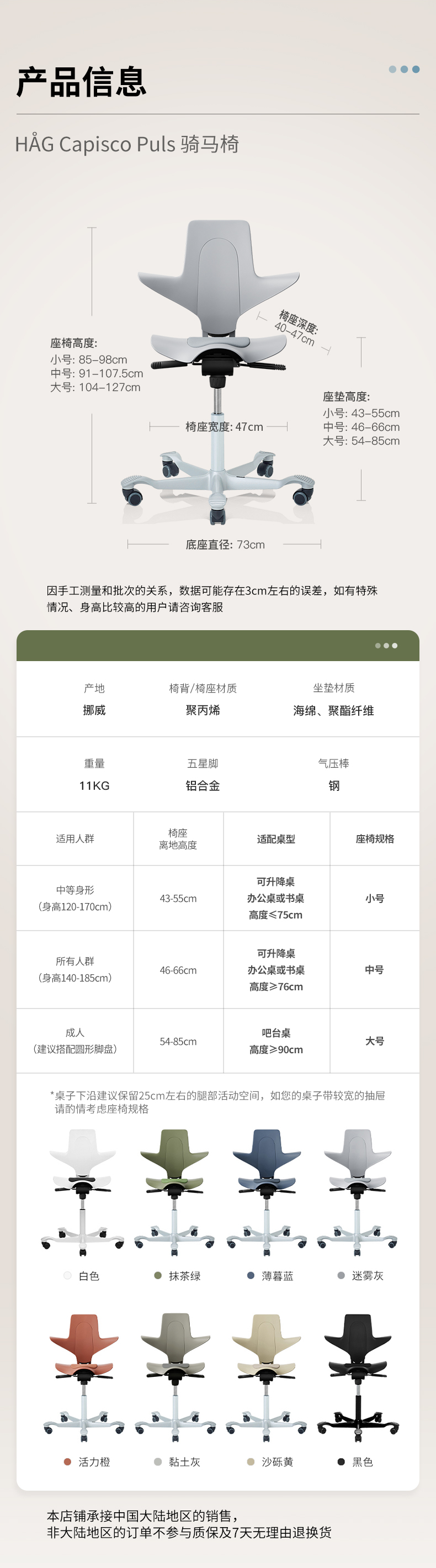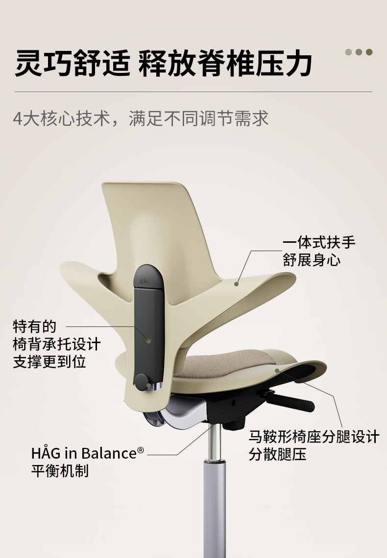 品牌直发 Flokk HAG Capisco Puls 骑马椅 砂砾黄/白色/抹茶绿/活力橙 中号/小号