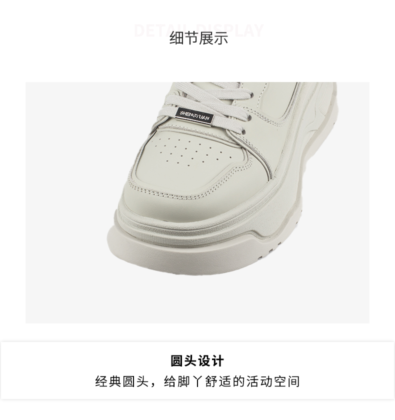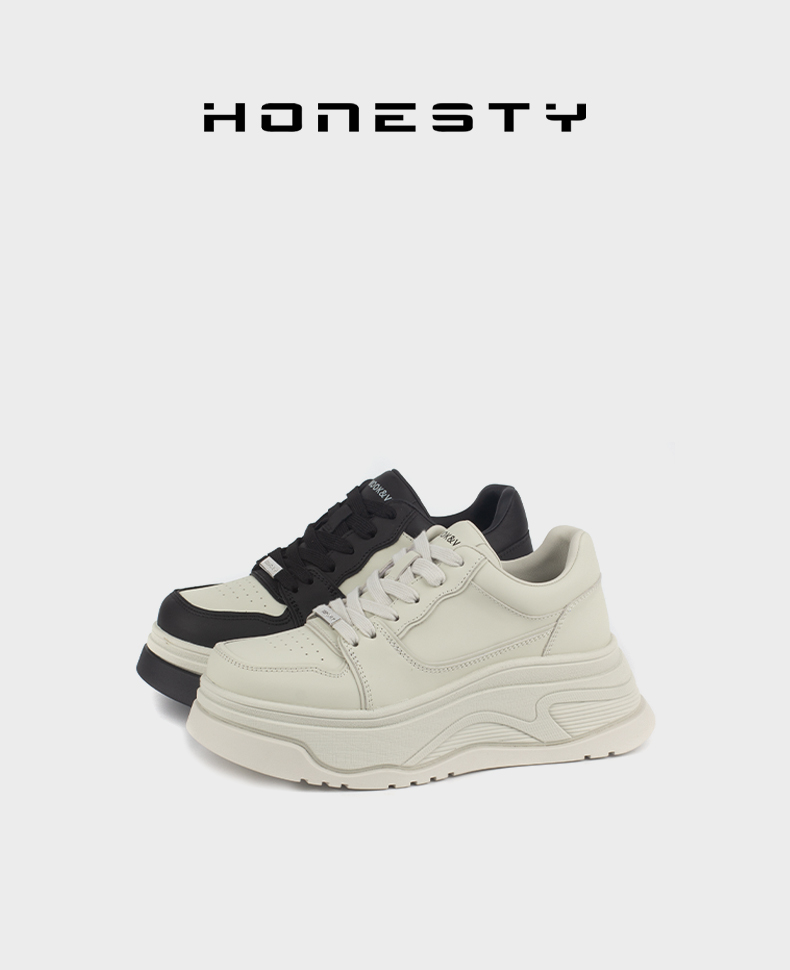 和诚行 2024秋冬新款女士时尚圆头系带休闲鞋学院风小白鞋1900055