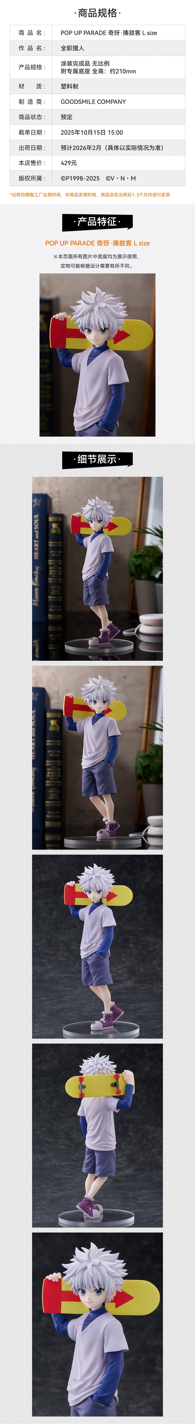 【GSC现货】POP UP PARADE 奇犽·揍敌客 L size 全职猎人