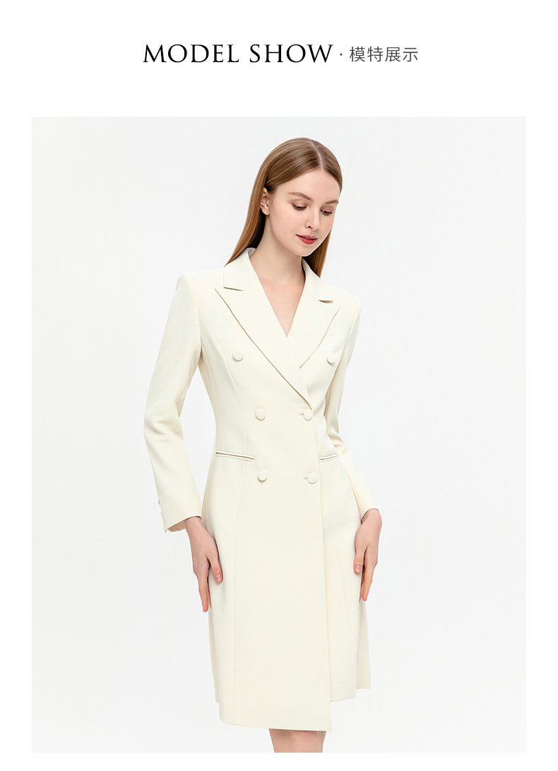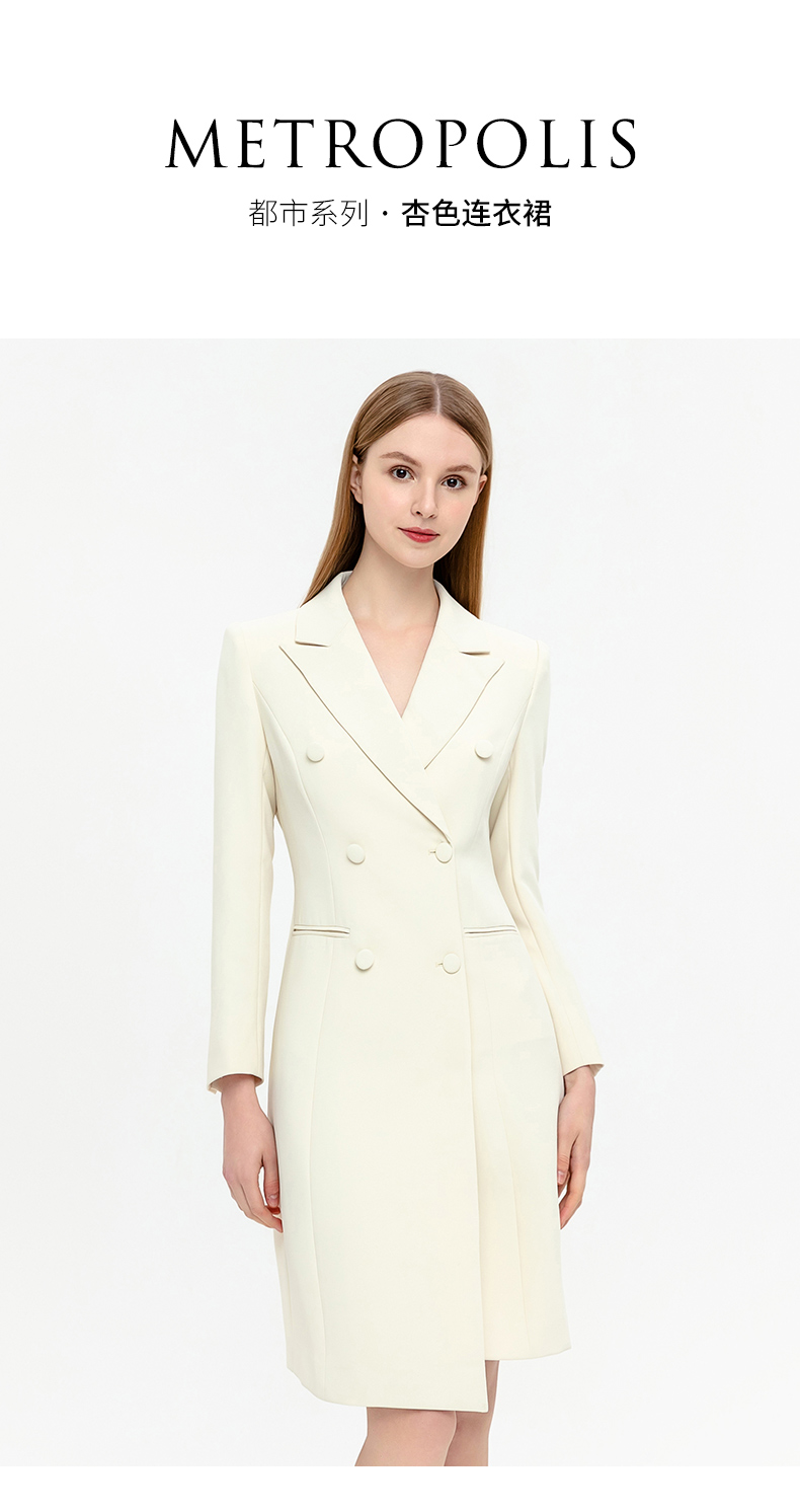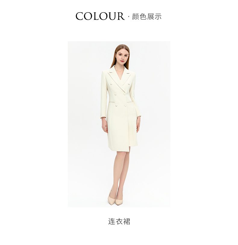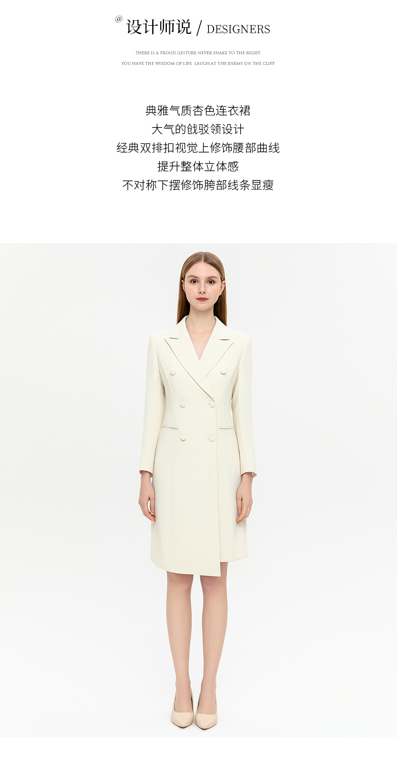 IWY/杏色春夏西装连衣裙女职业修身显瘦冯琳同款主持人播音艺考女Q13140