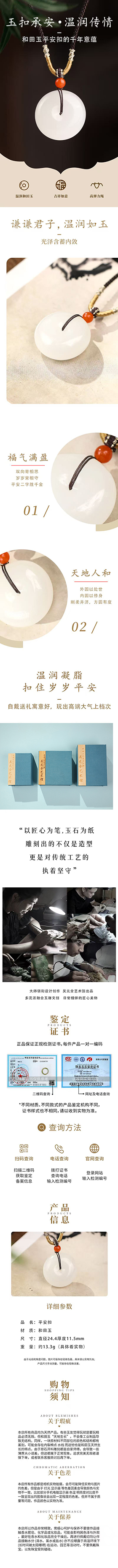 和田玉平安扣吊坠 女款轻奢玉石吊坠 送家人朋友的礼物 男女同款