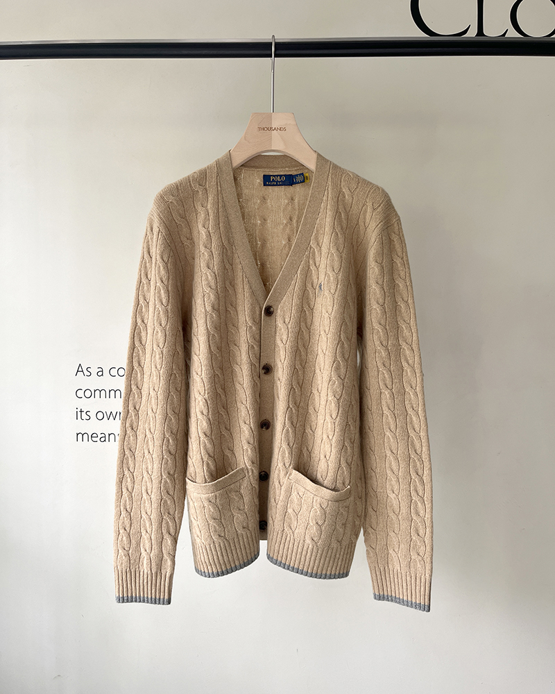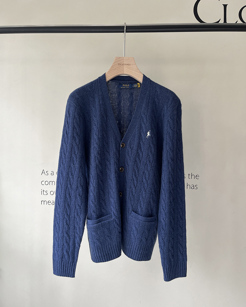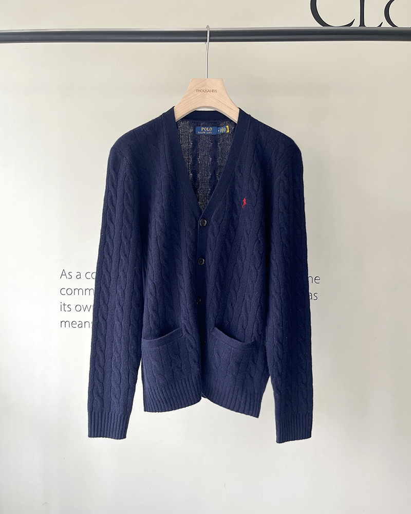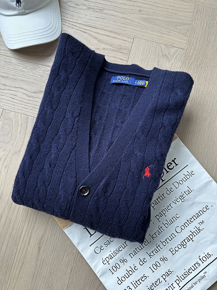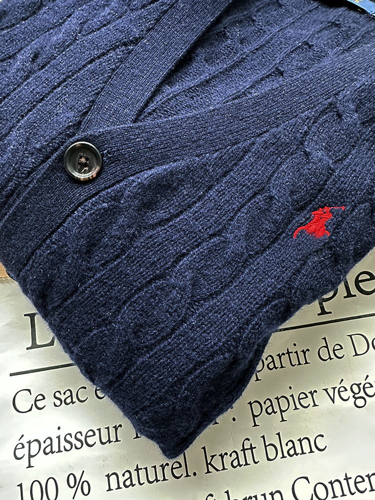 单品包邮现货 THS 无 RL马球男士 源厂尖尾PRL 羊毛羊绒Cable Knit绞花针织V领开衫 3色 AM1140