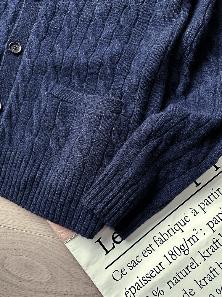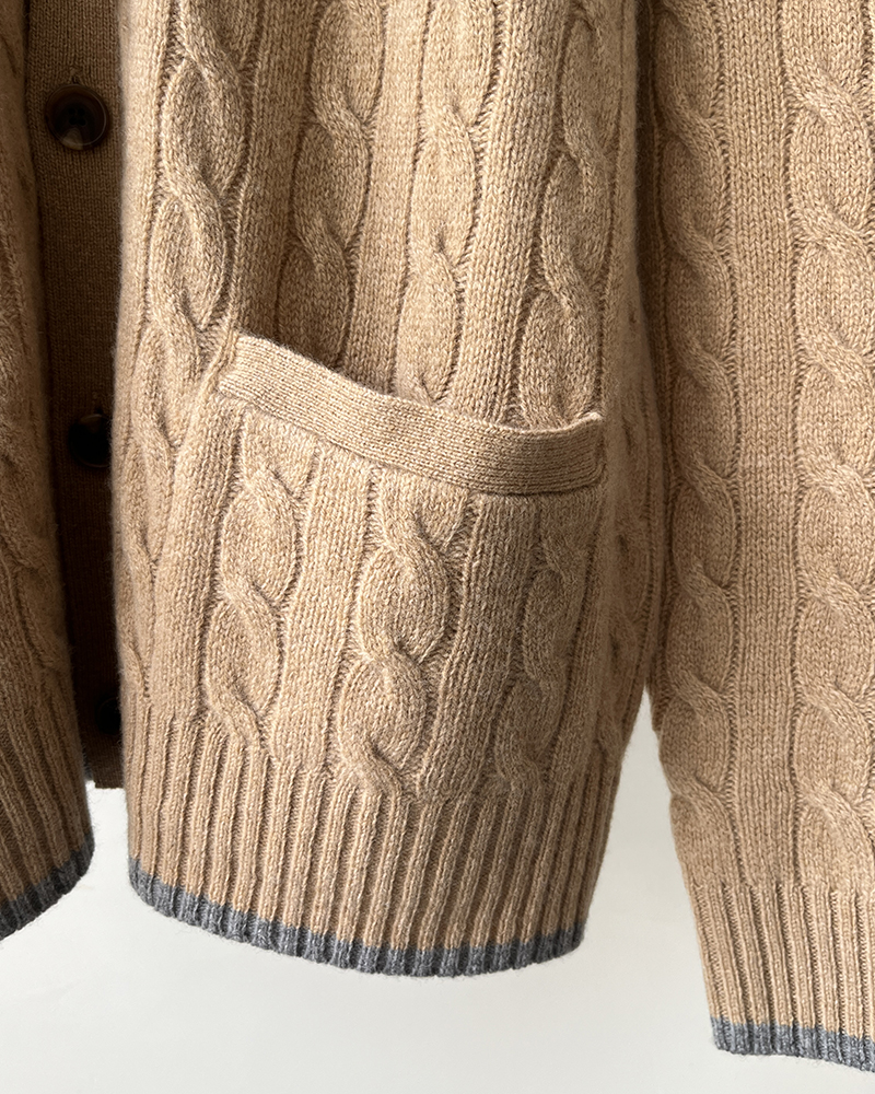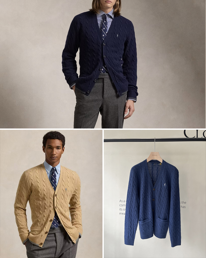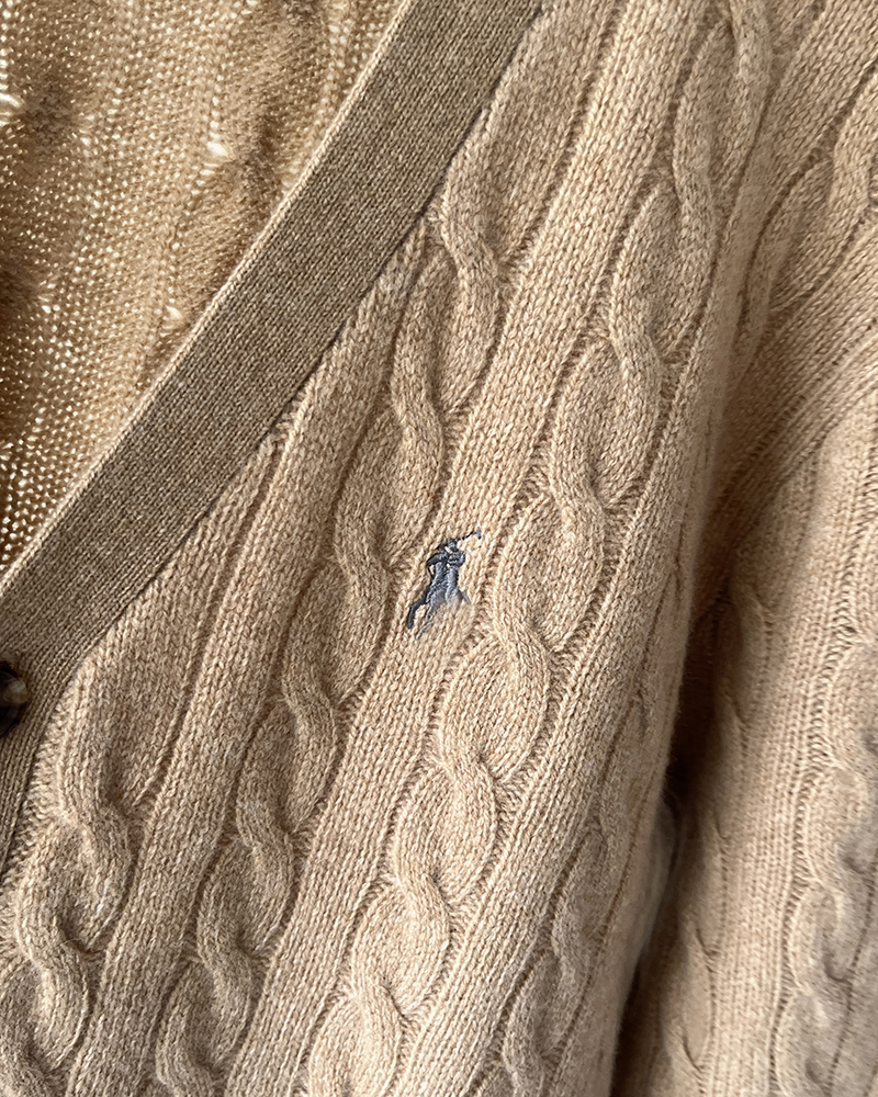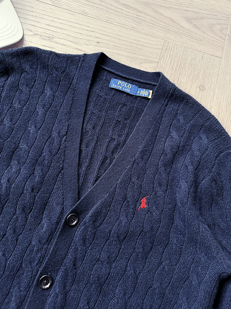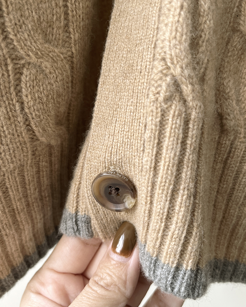 单品包邮现货 THS 无 RL马球男士 源厂尖尾PRL 羊毛羊绒Cable Knit绞花针织V领开衫 3色 AM1140