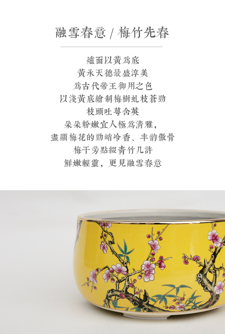 莺歌烧 粉彩浅黄梅竹先春 电陶炉