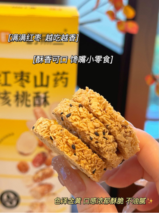 营养美味,暖心之选:精选优质红枣、山药、核桃,富含多种营养成分。 酥香可口,营养丰富,无论是早餐搭配牛奶,还是午后休闲解馋,都能为你带来温暖与满足。