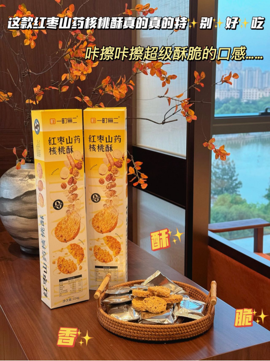 🌸【一町無二•红枣山药核桃酥】🤤一口沦陷!养生党狂喜的神仙酥点! 当红枣的蜜甜、山药的绵密💖、核桃的醇香在舌尖碰撞,🌿 这款红枣山药核桃酥直接把健康和美味锁死!