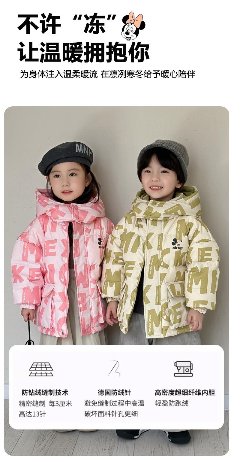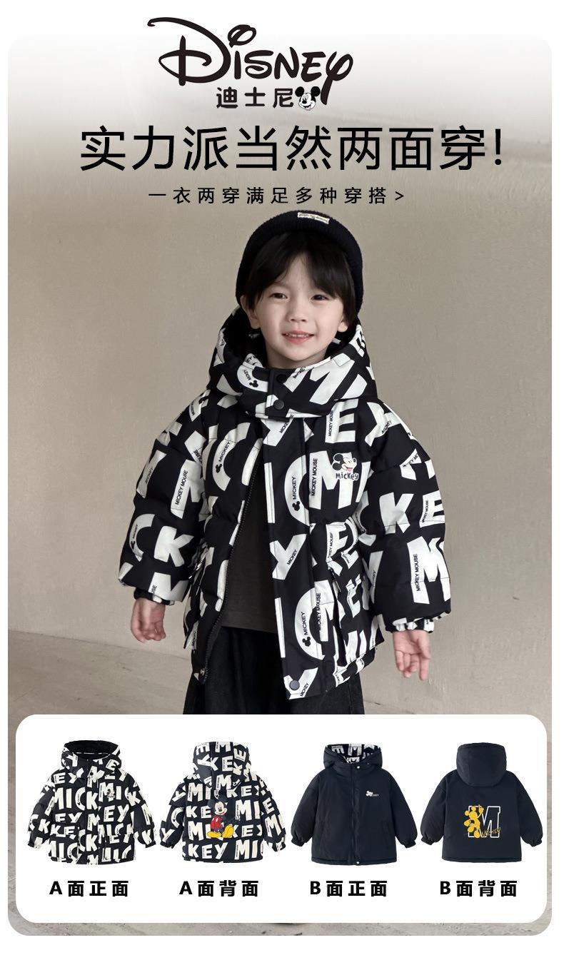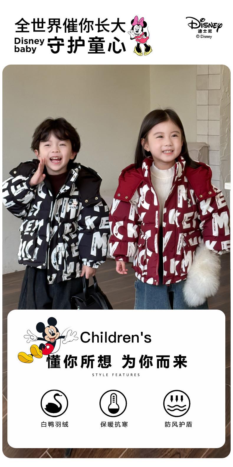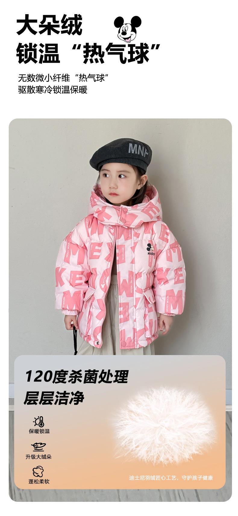 迪士尼儿童羽绒服新款中小童装白鸭绒男女童加厚连帽外套