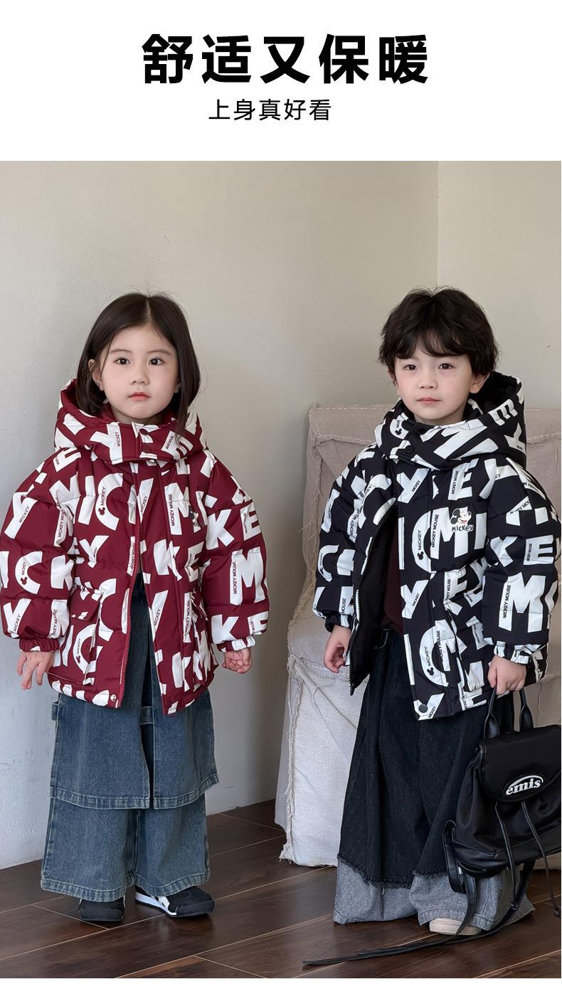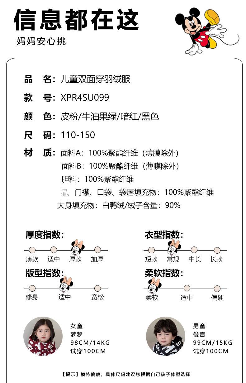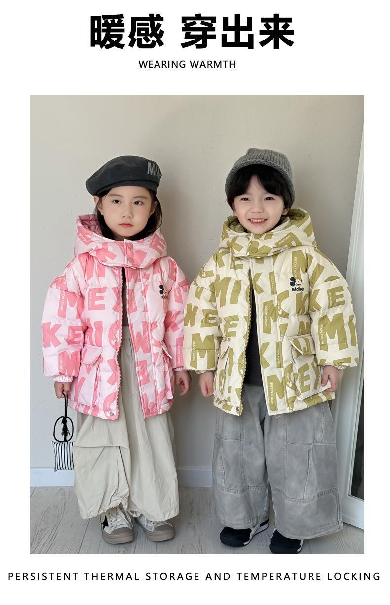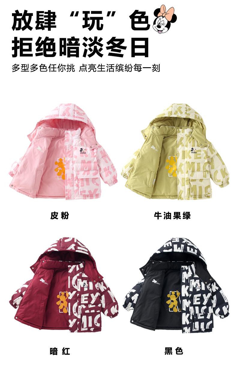 迪士尼儿童羽绒服新款中小童装白鸭绒男女童加厚连帽外套