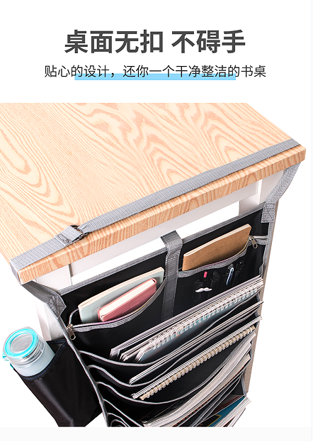 不仅如此 这款挂书袋还搭配一个防滑带饶桌一周, 结实稳固,不滑落 用起来更放心